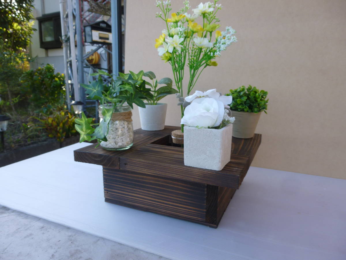 天板部分にお猪口・ジョッキ・コップ・小鉢等を置き、下部の箱部分にはお銚子やビール等を置き雰囲気を味わってみてはいかがでしょうか。