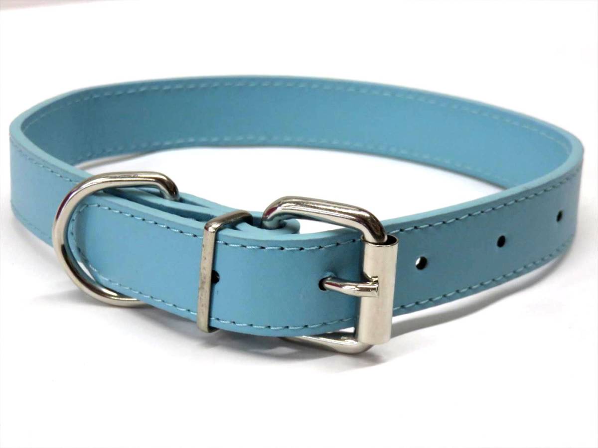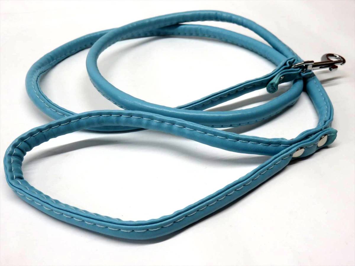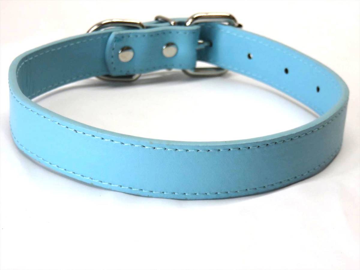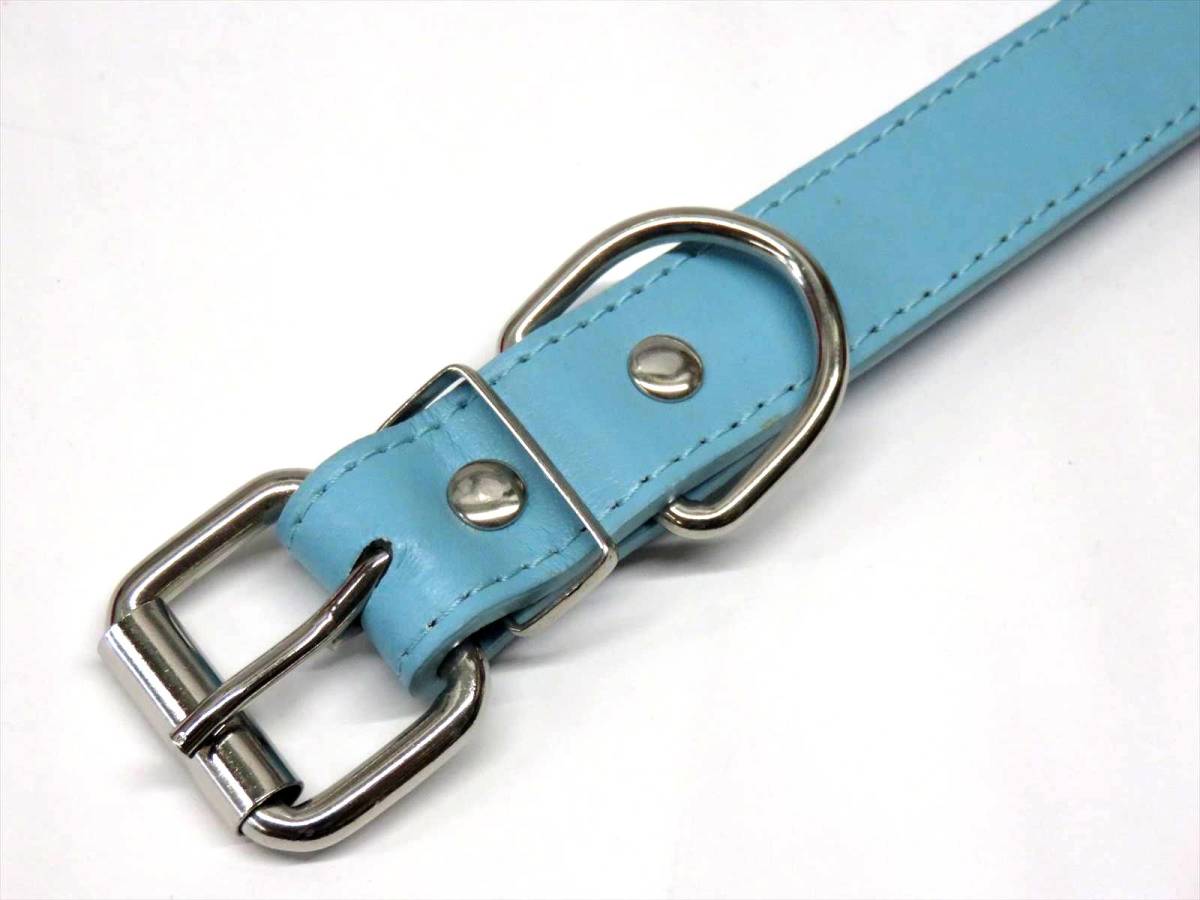 首輪 リード セット 水色 L 首回り37~47cm 幅2.3cm リード120cm 中型犬 犬用 青 ブルー PUレザー シンプル カラー ペット用品 散歩 新品