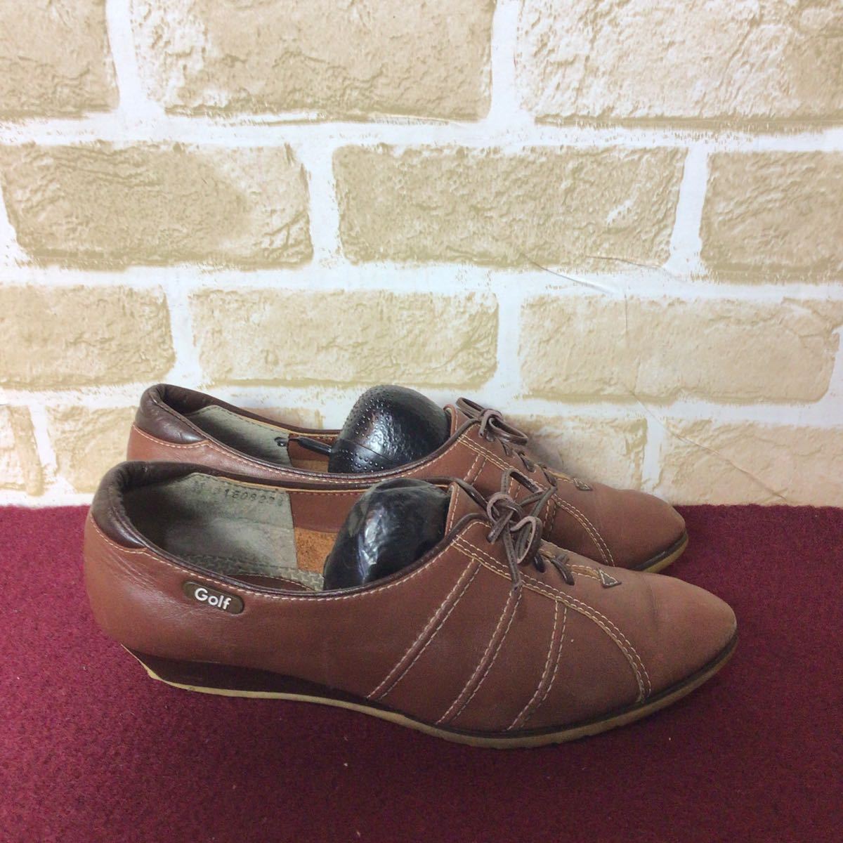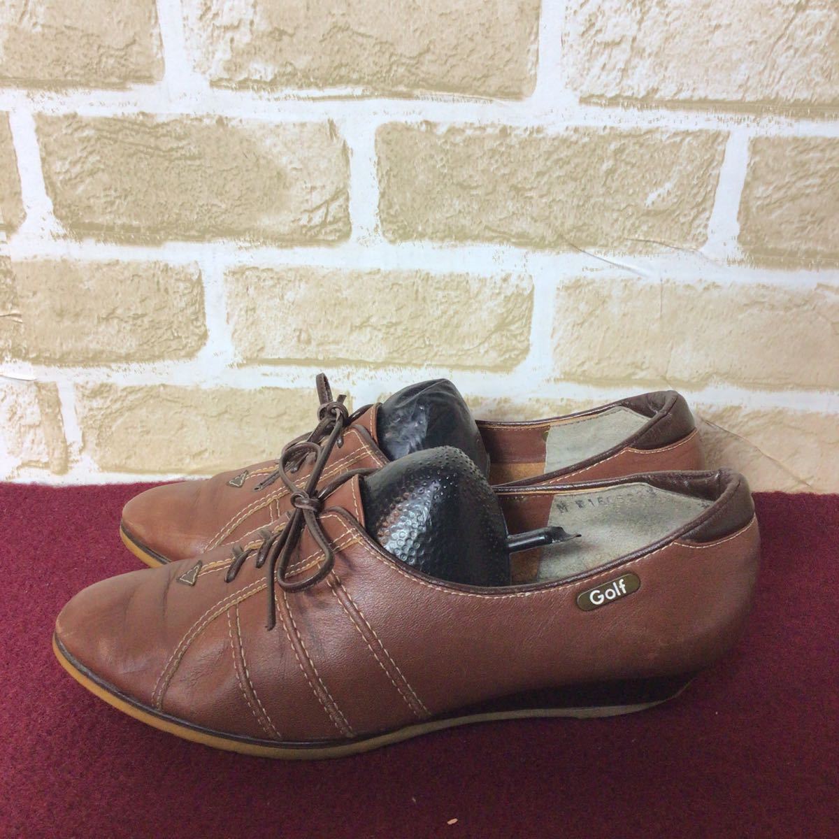 【売り切り!送料無料!】A-27 Golf!レザーシューズ!23.5!仕事!普段履き!茶色!革靴!ブラウン!中古