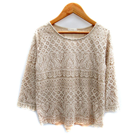 ビス ViS カットソー 七分袖 総レース ラウンドネック M ベージュ /SY6 レディース