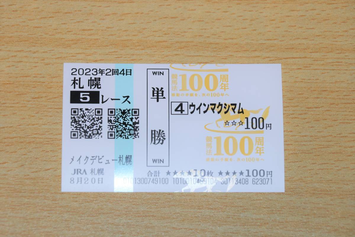 ウインマクシマム メイクデビュー札幌 5R (2023年8/20) 現地単勝馬券(札幌競馬場)です。気に入って頂けた方の落札を心よりお待ちしております。商品は定型郵便(110円)で発送となります。どうかよろしくお願い致します。