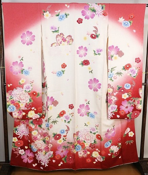 き47 正絹 振袖 3点セット 振袖・帯・襦袢 花柄 【美品】 身丈163cm ◎◎セール◎◎
