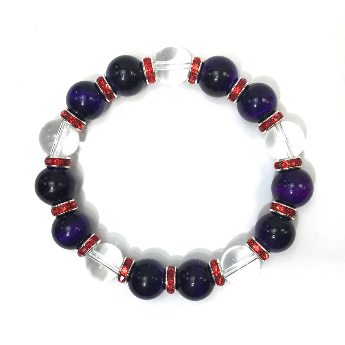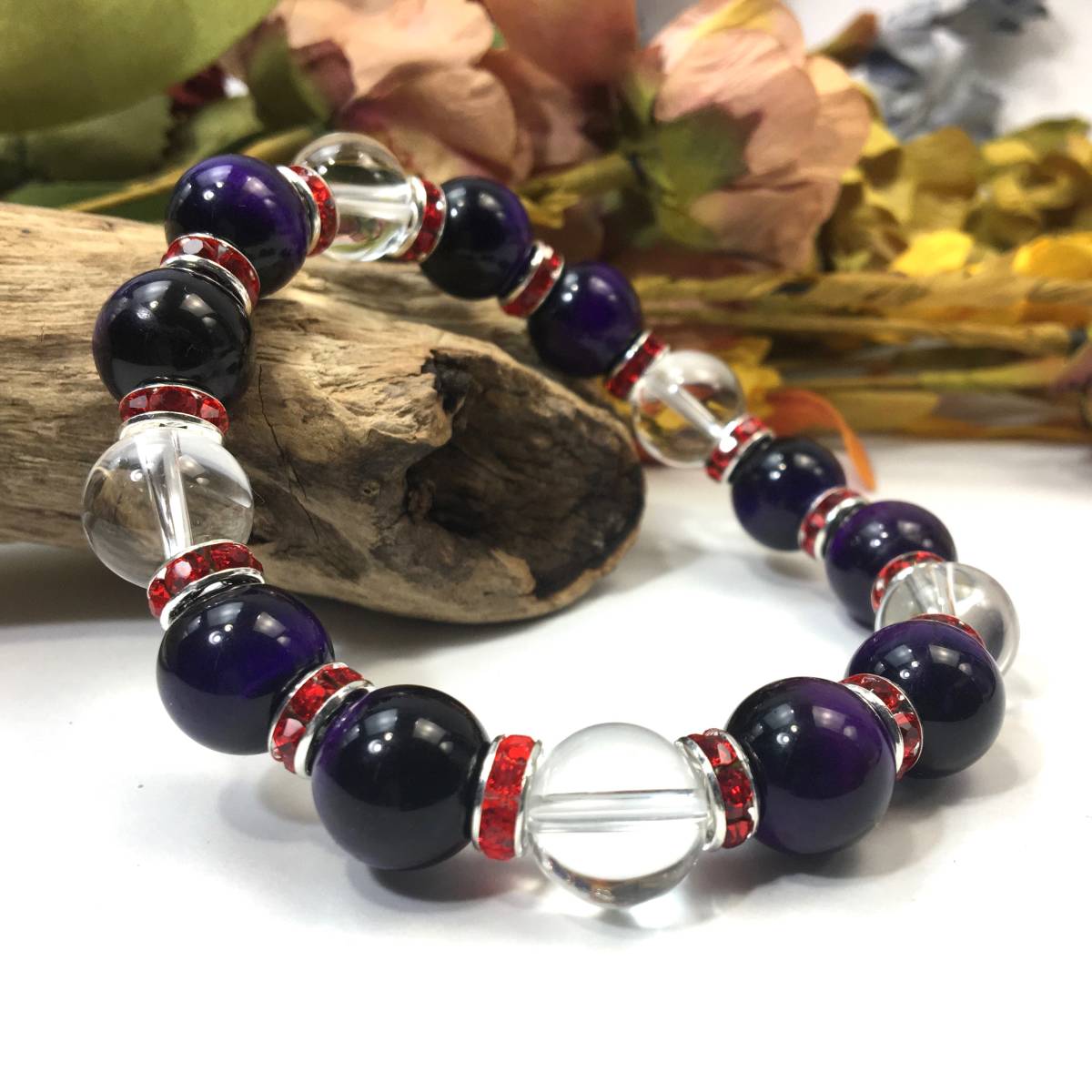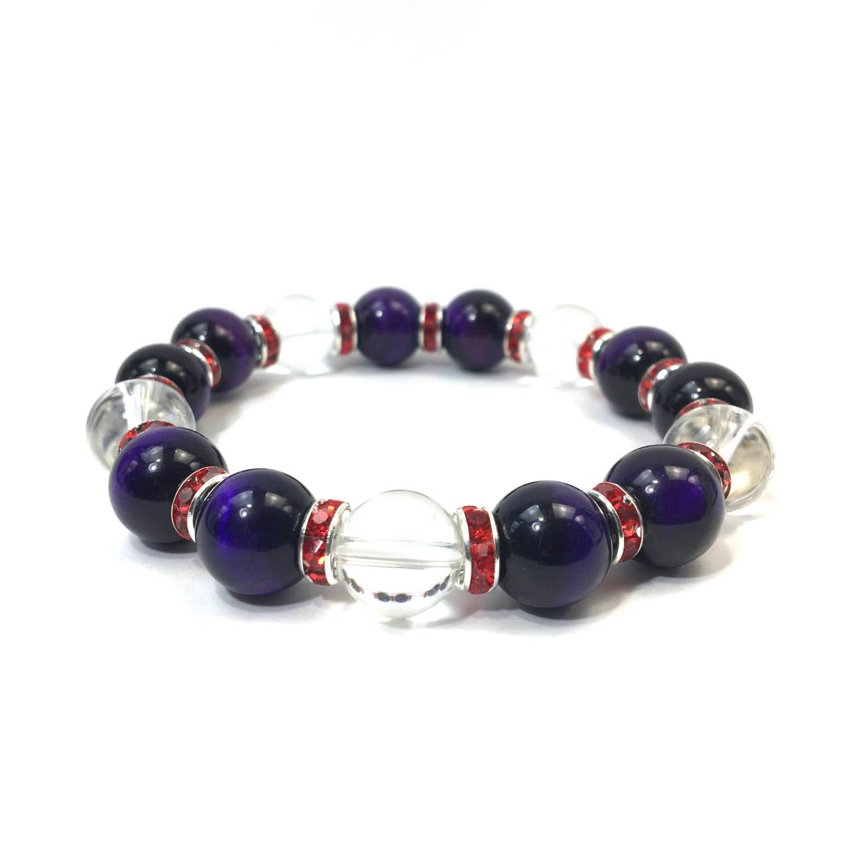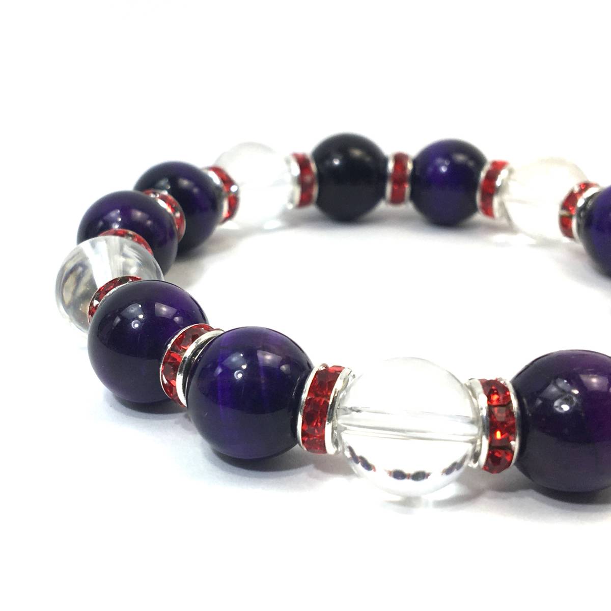 パープルタイガーアイ&水晶 パワーストーン ブレスレット 天然石ブレス (レッド) 12mm 幸運 開運 メンズ 男性
