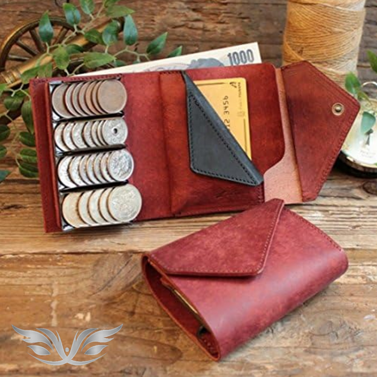 この財布は、コインを整然と収納できる非常に個性的でコンパクトなデザインを特徴としています。