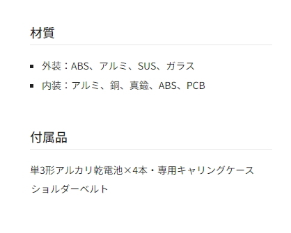 単3形アルカリ乾電池×4本・専用キャリングケース・ショルダーベルト