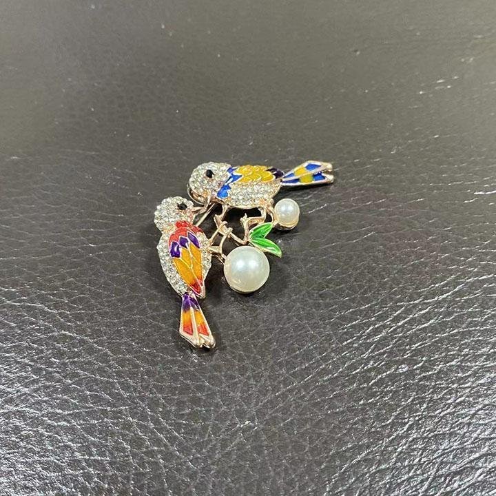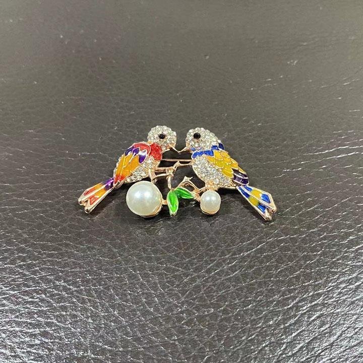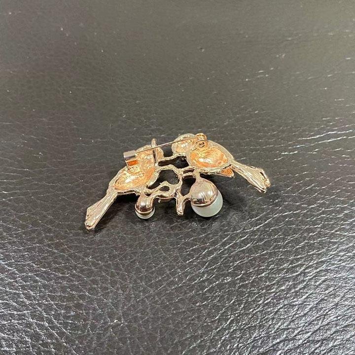【動物】パール キラキラ 2匹 小鳥 2WAY ブローチ/ゴールド