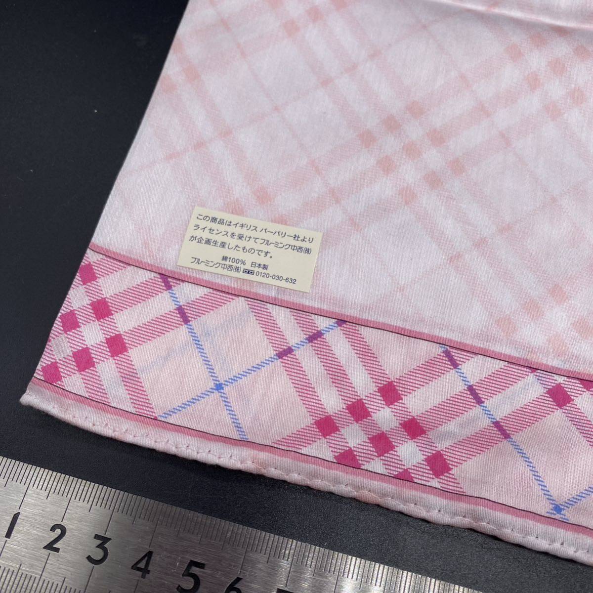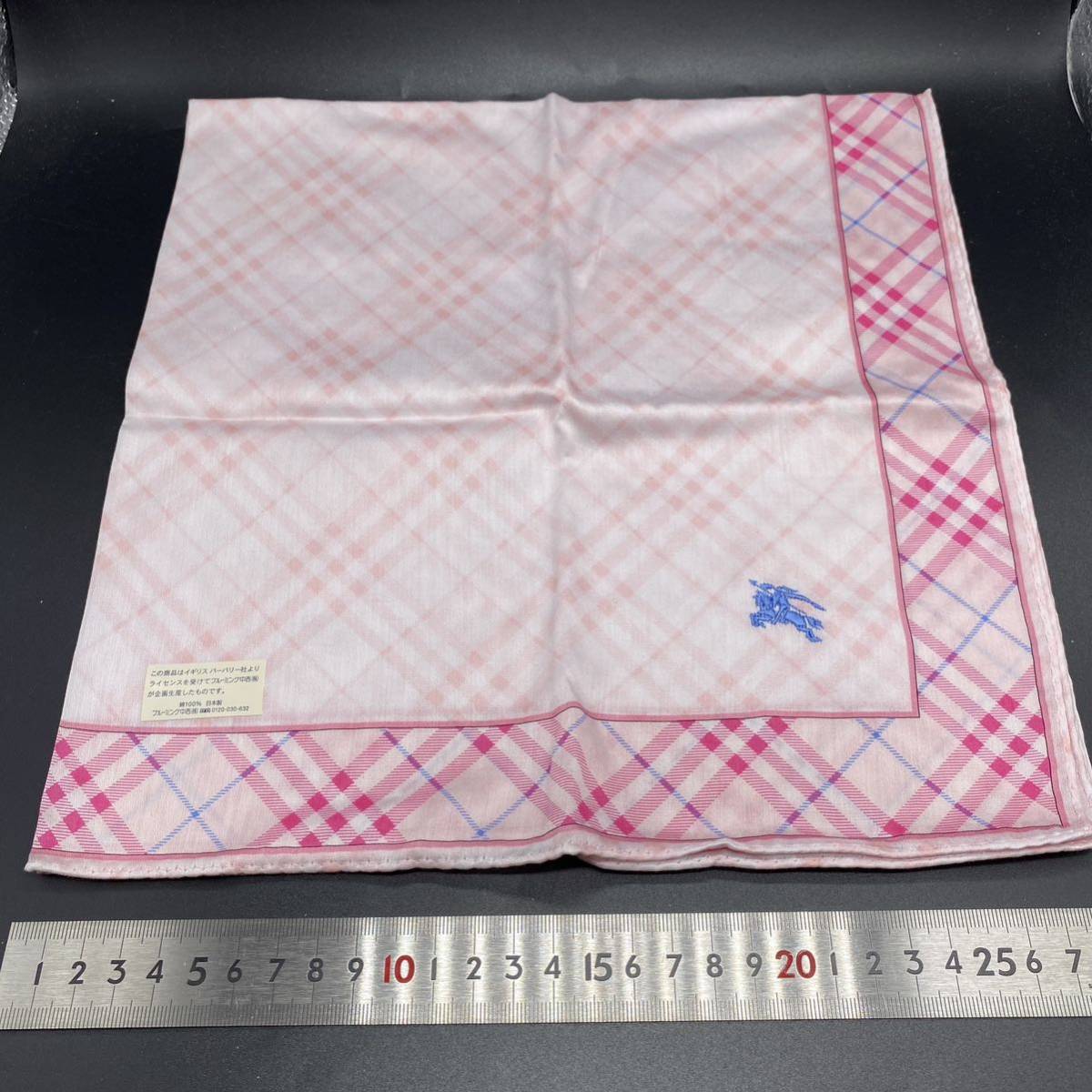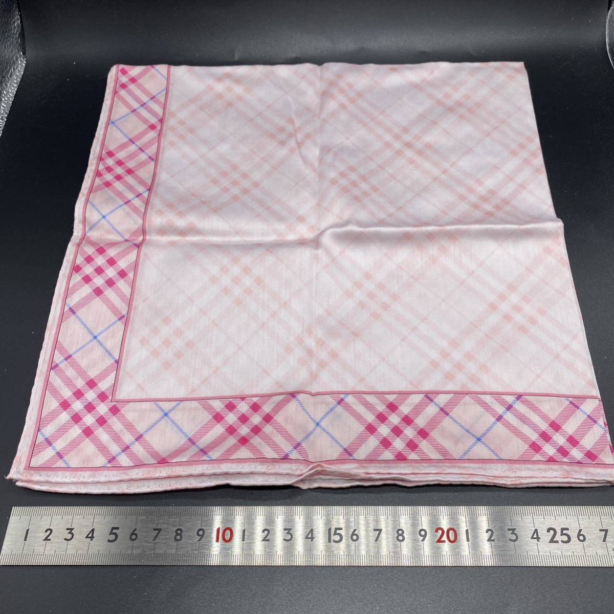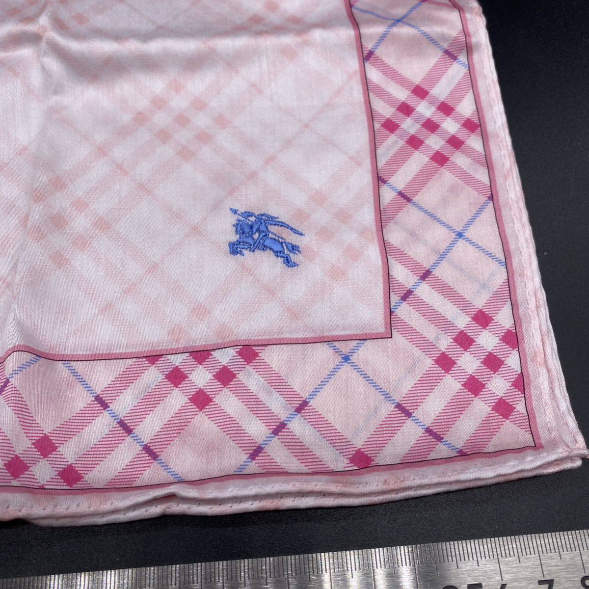 BURBERRY バーバリー ハンカチ  ピンクチェック ライトブルーホースマーク刺繍 no.29