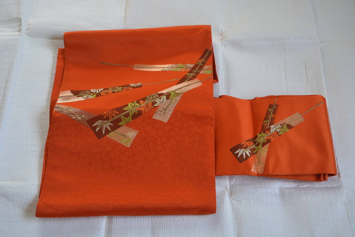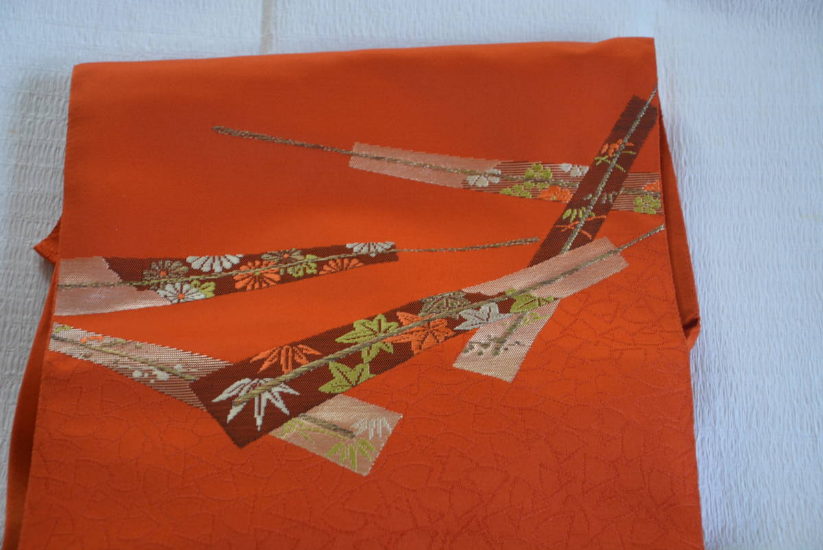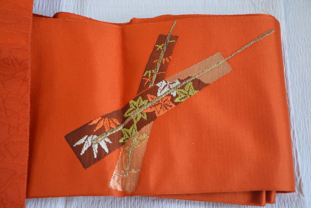 ★新品未使用★ 婦人和装 名古屋帯 朱色に扇子