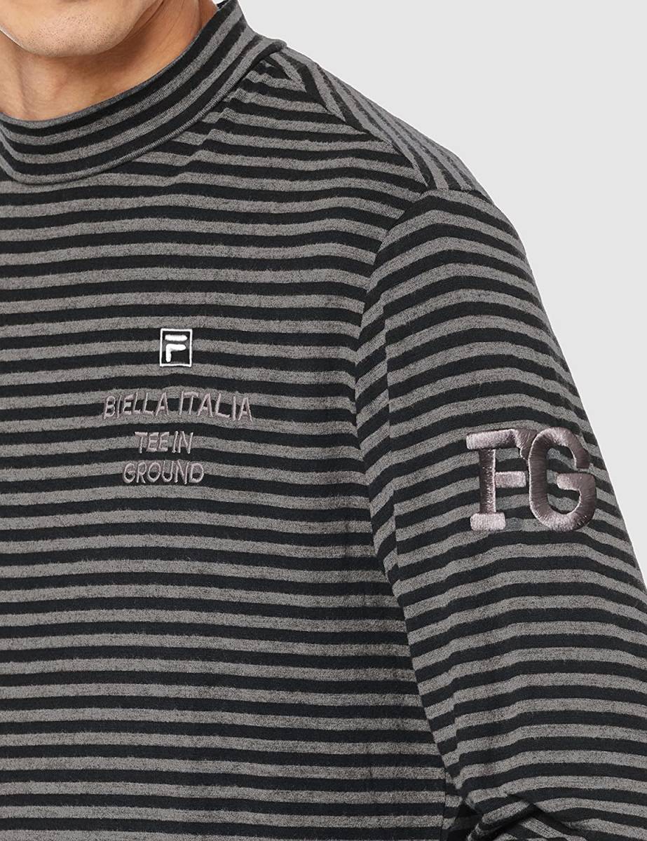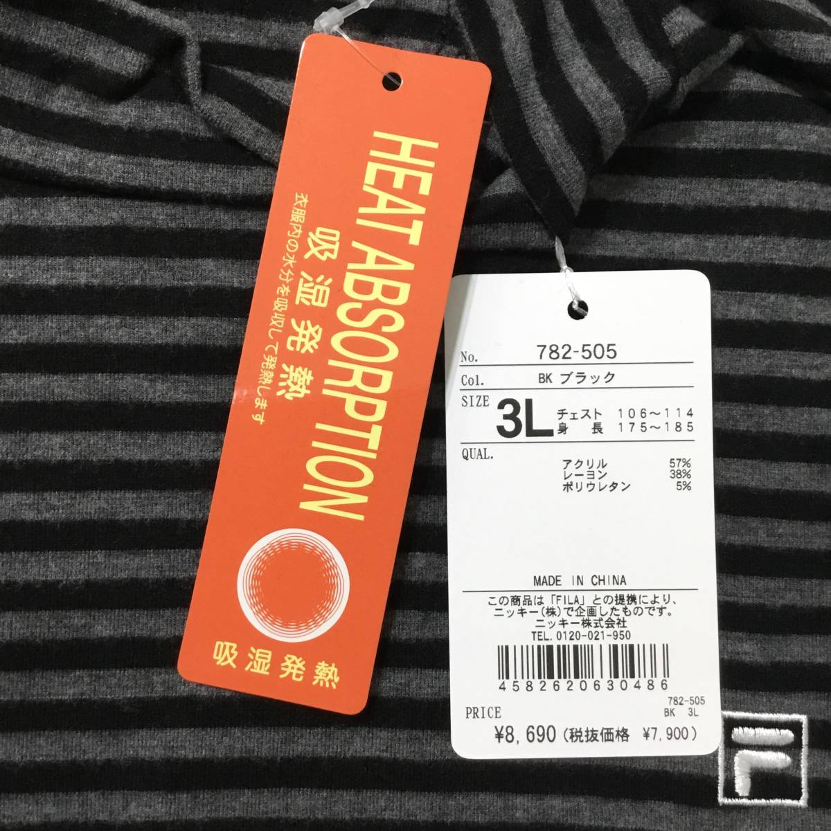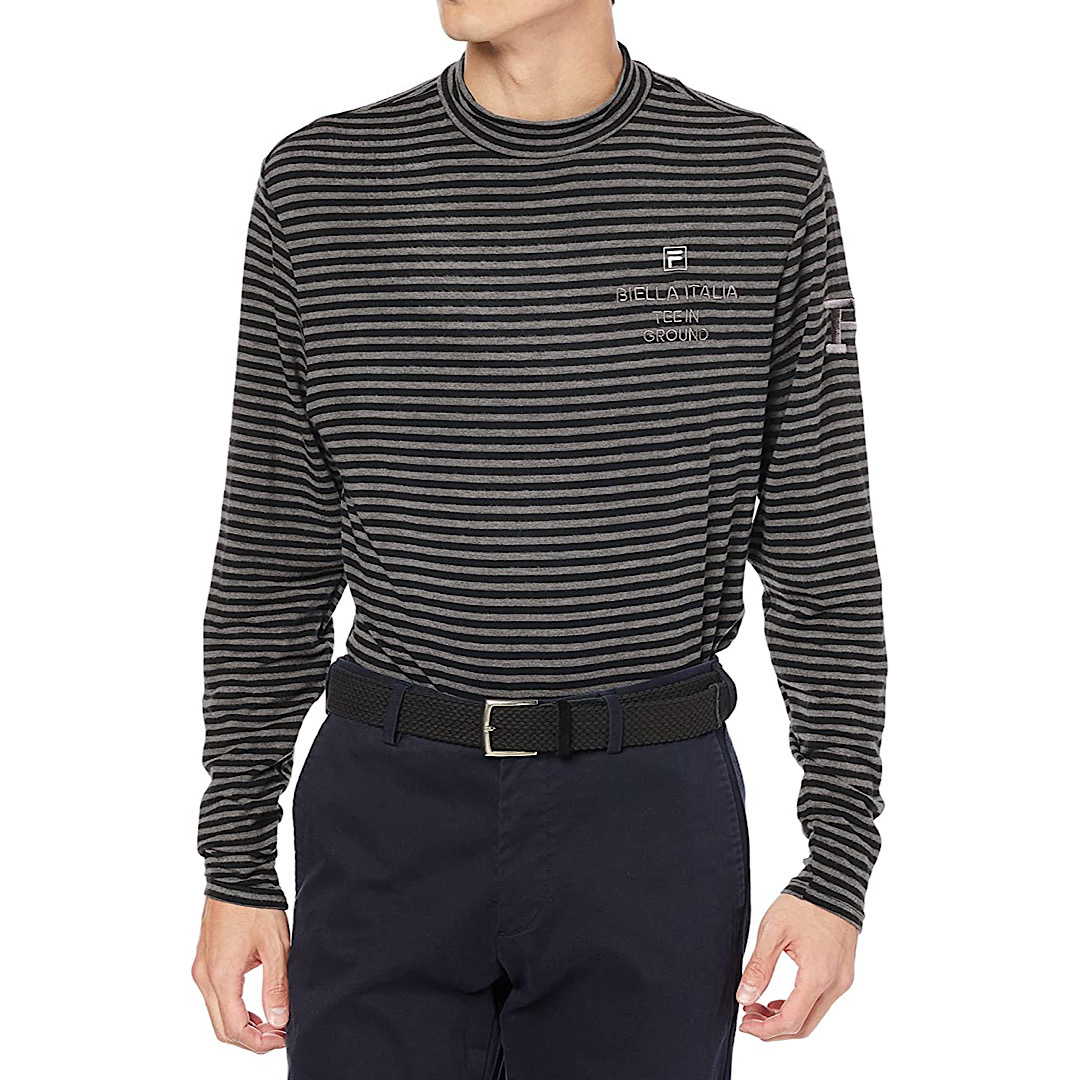 新品 フィラ ゴルフ 長袖 ボーダー柄 モックネック シャツ 782-505 黒 ブラック 3Lサイズ 吸湿発熱 税込8,690円 メンズ ゴルフシャツ