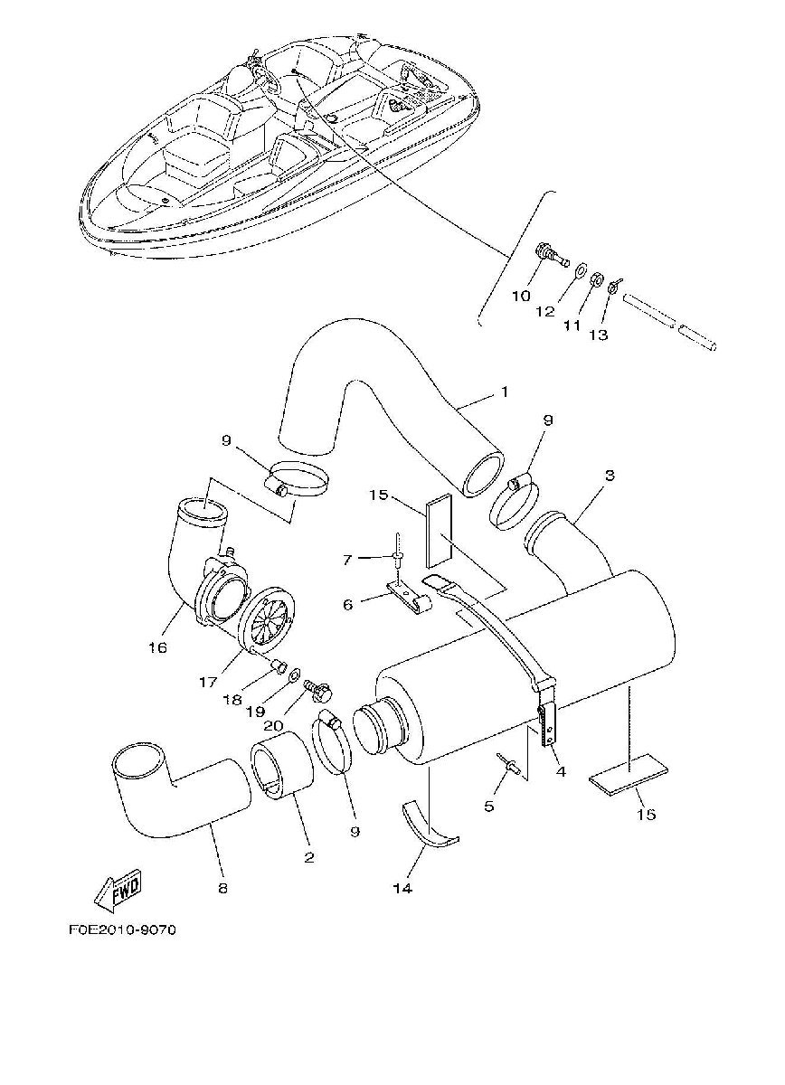 YAMAHA EXCITER1430'00 OEM section (EXHAUST-2) parts Used (部品番号F0E-67555-00 HOSE, EXHAUST) [X2304-16]
