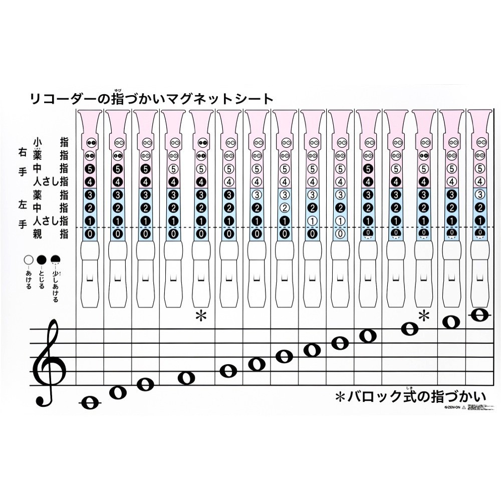 全音 ZRM-5A リコーダーの指づかい 全音階 指導用マグネットシート 黒板表示用教材