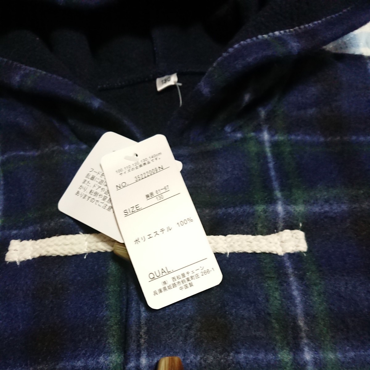 〇0930☆未使用・保管品☆フリースダッフルコート 緑チェック130