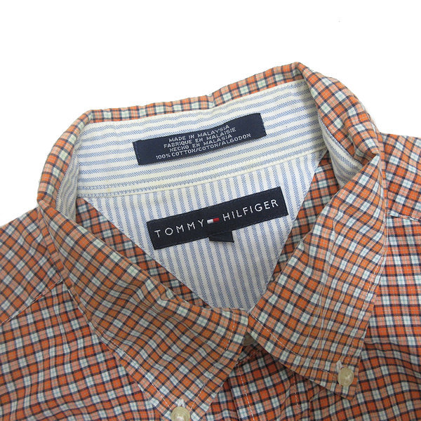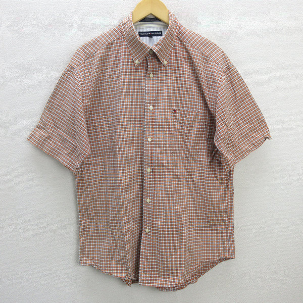 y■トミーヒルフィガー/TOMMY HILFIGER タータンチェック半袖ボタンダウンシャツ■橙【メンズL】MENS/95【中古】