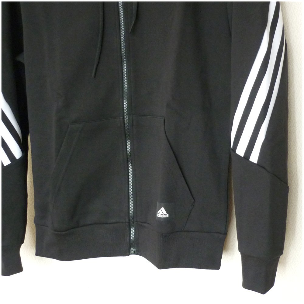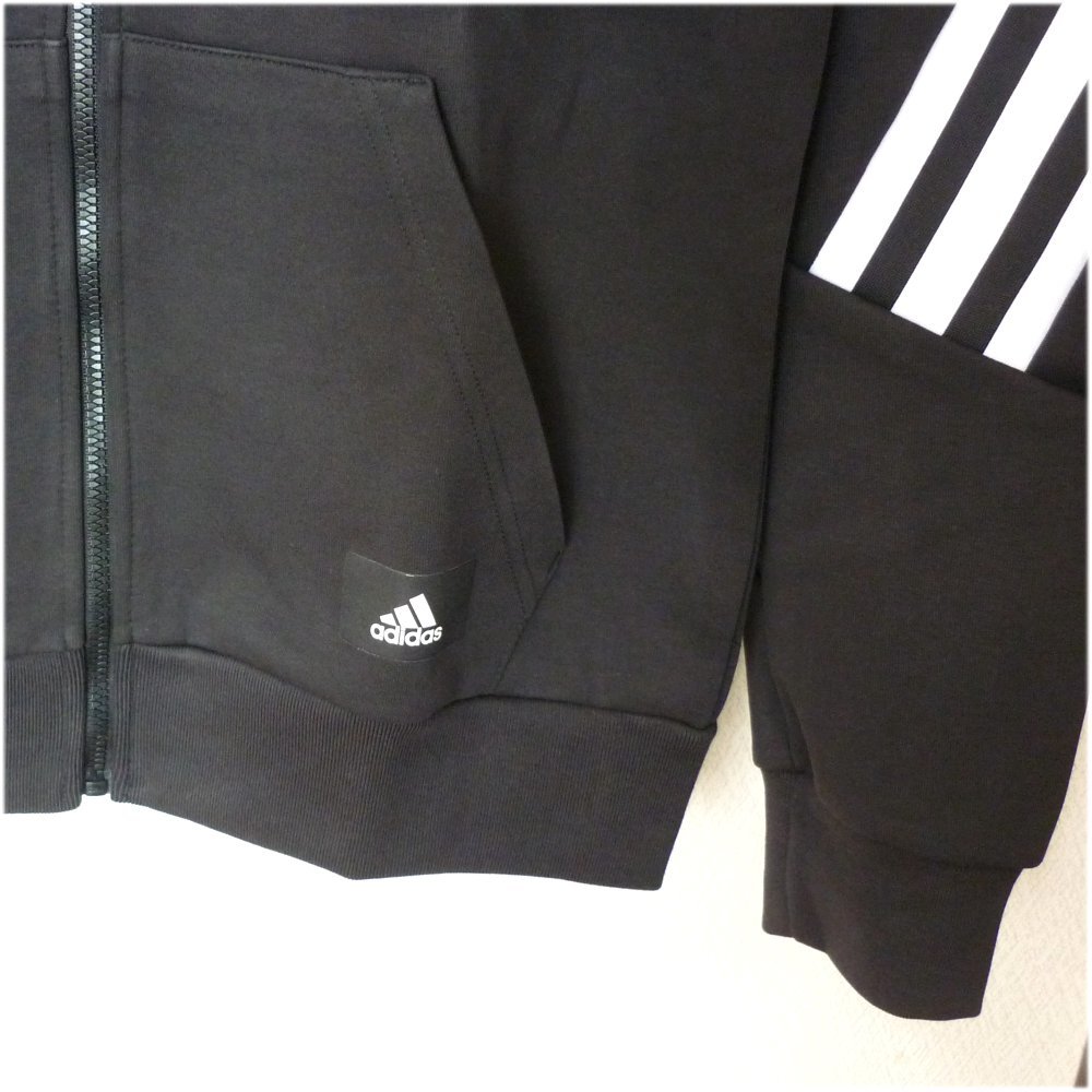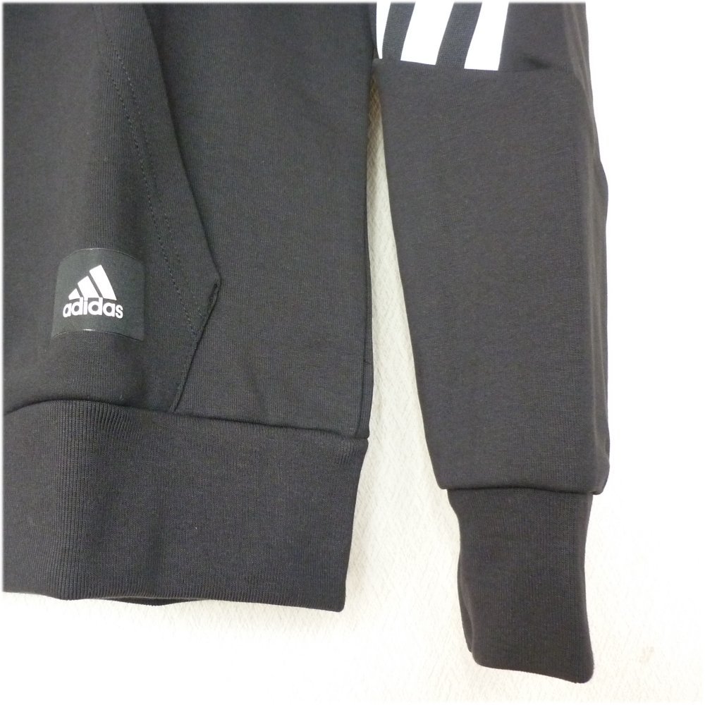 新品正規品L★アディダス adidas 黒メンズフルジップパーカー 3ストライプス入り/レディースもOK/スウェット