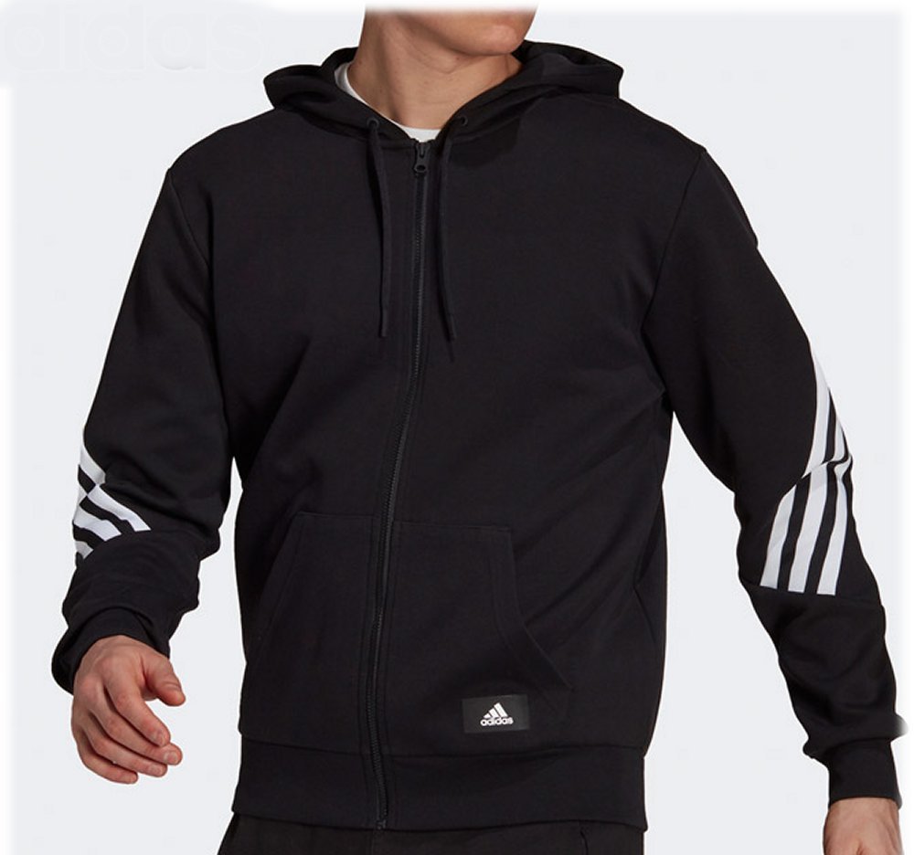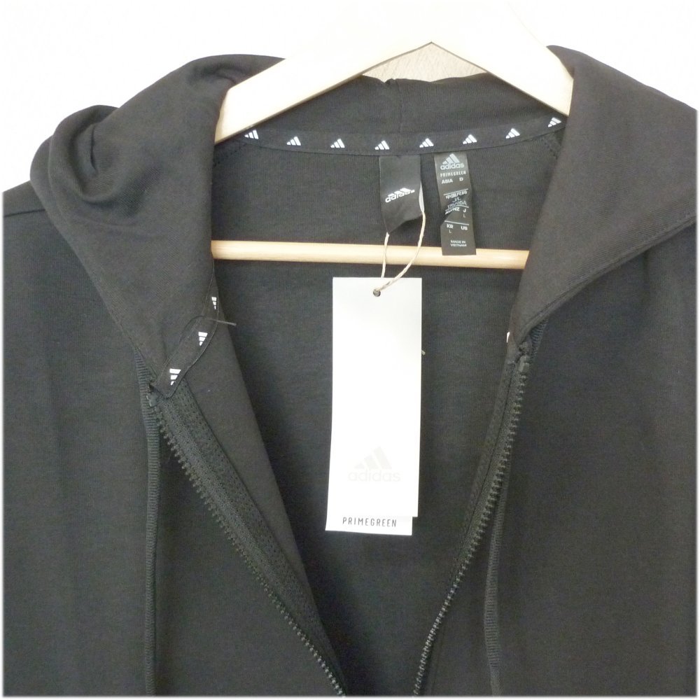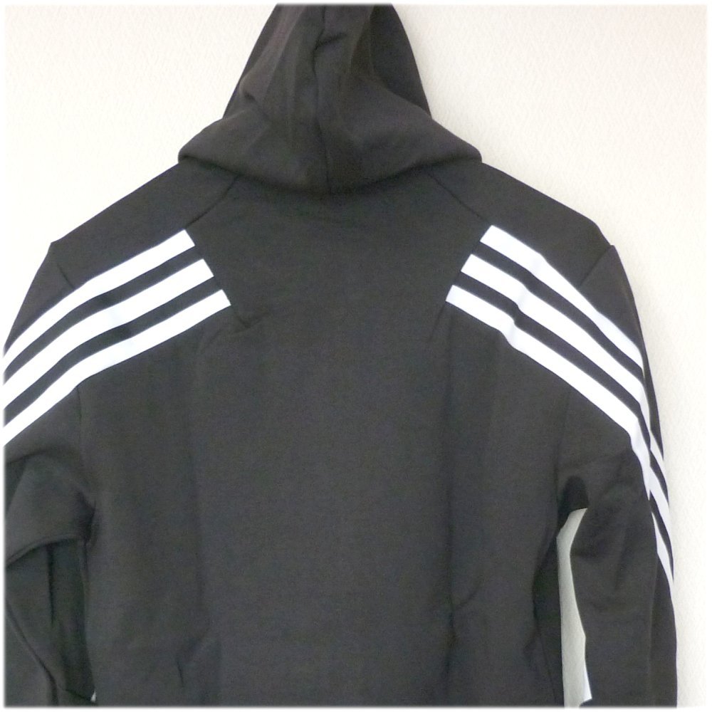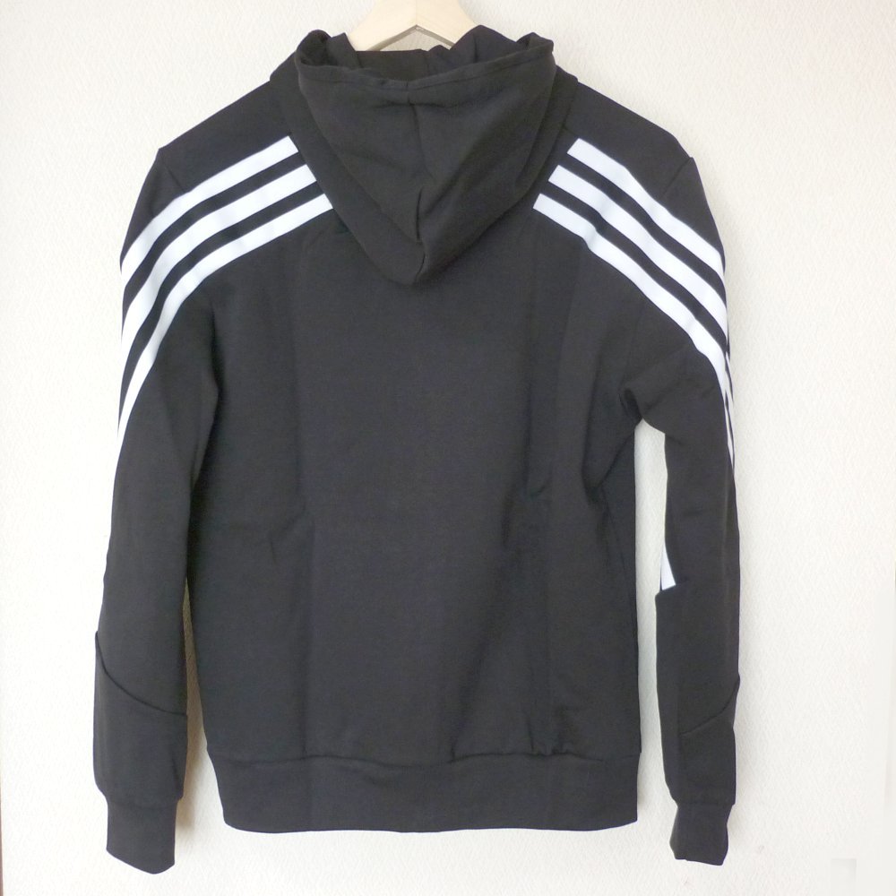 新品正規品L★アディダス adidas 黒メンズフルジップパーカー 3ストライプス入り/レディースもOK/スウェット
