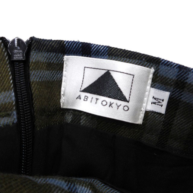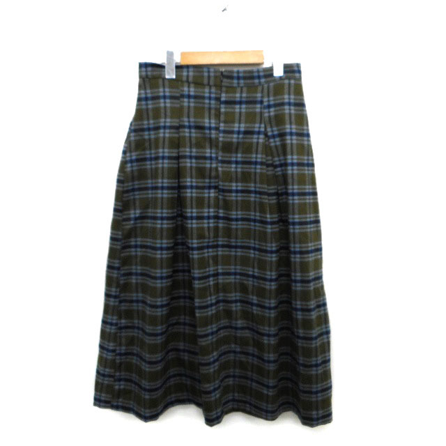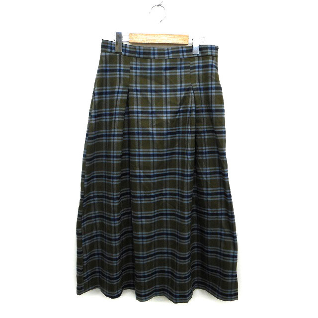 アビトーキョー ABITOKYO スカート フレア ロング マキシ丈 チェック タック バックジップ M カーキ /NT8 レディース