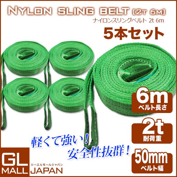 強度・耐荷・耐久性に優れた本格派のベルトスリング! ナイロンスリングベルト 耐荷重2.0t×6m 5本 / 玉掛け 吊上げ ロープ 牽引