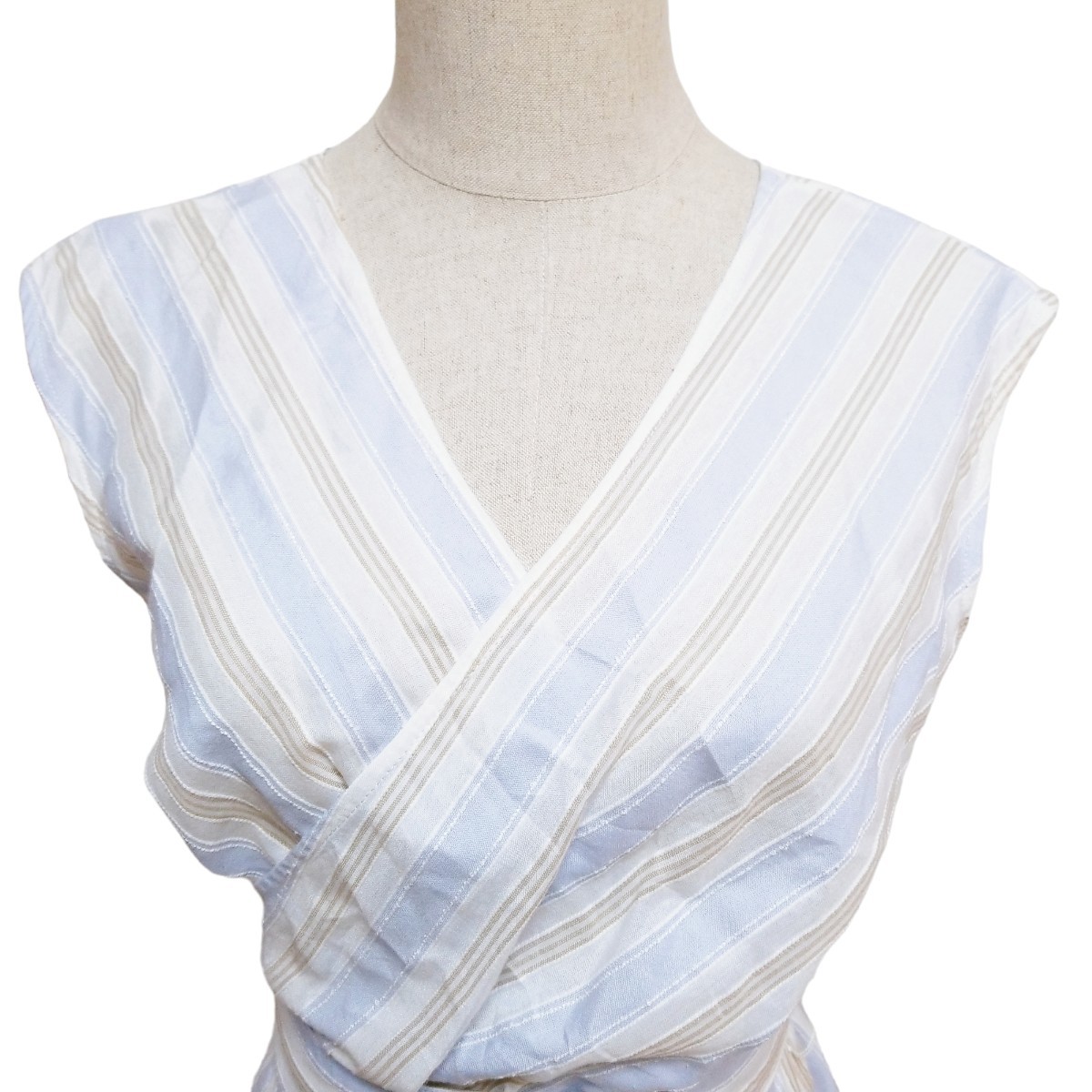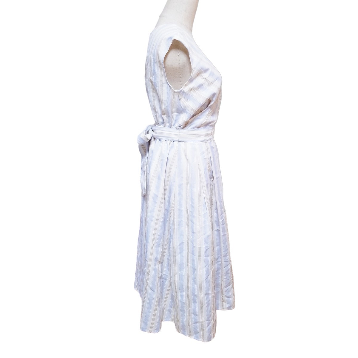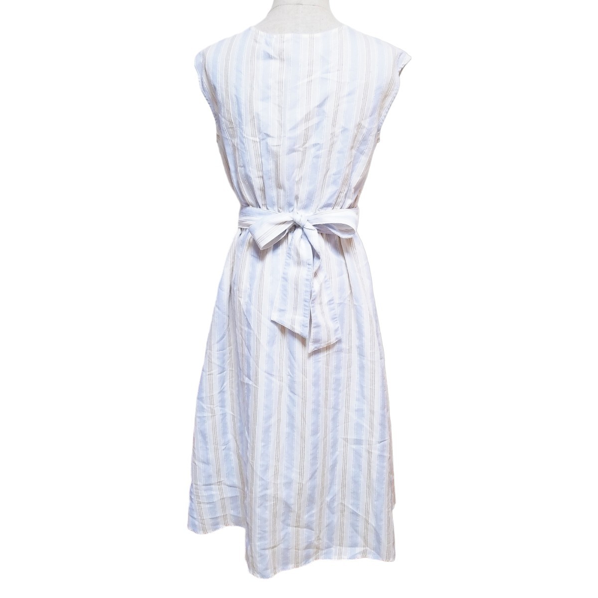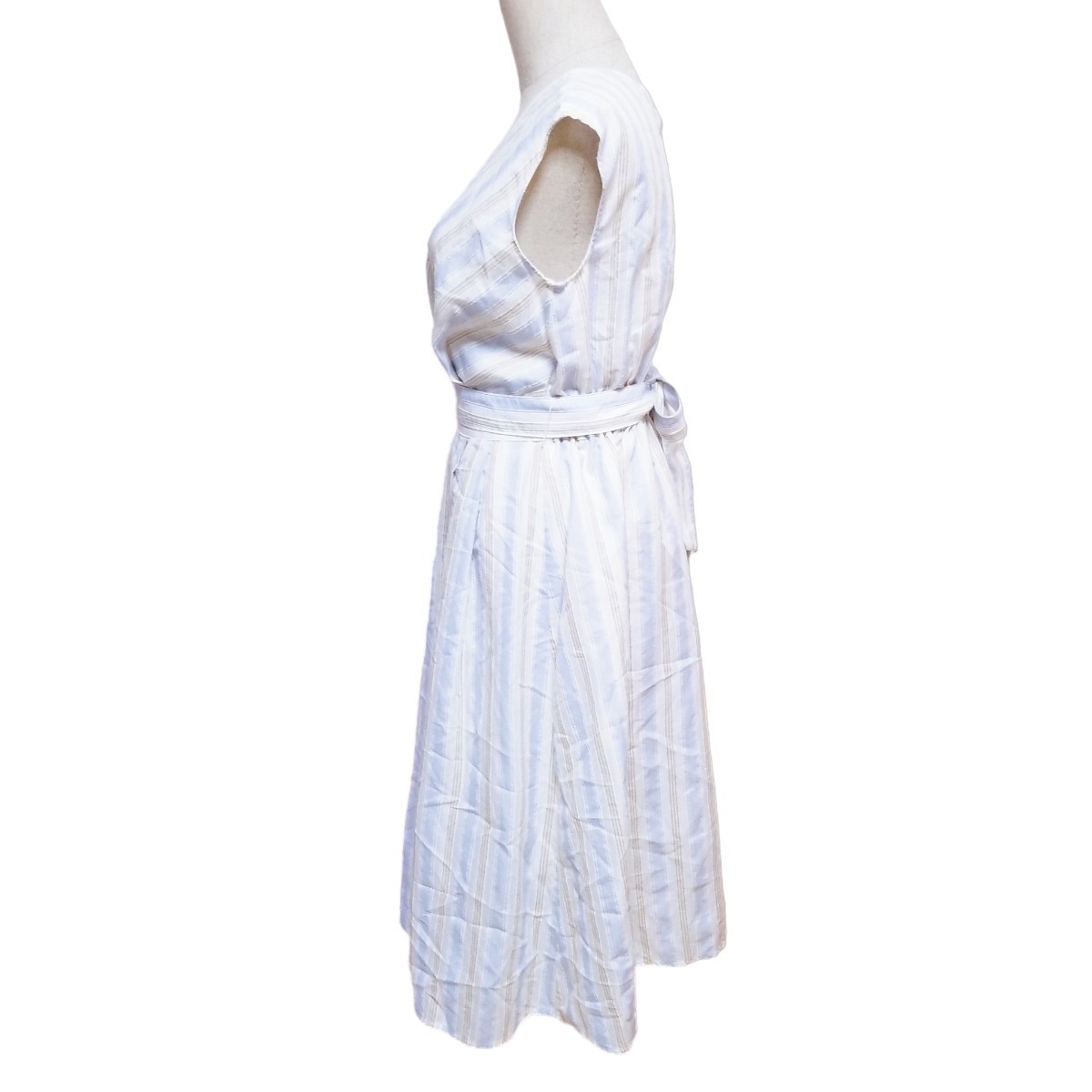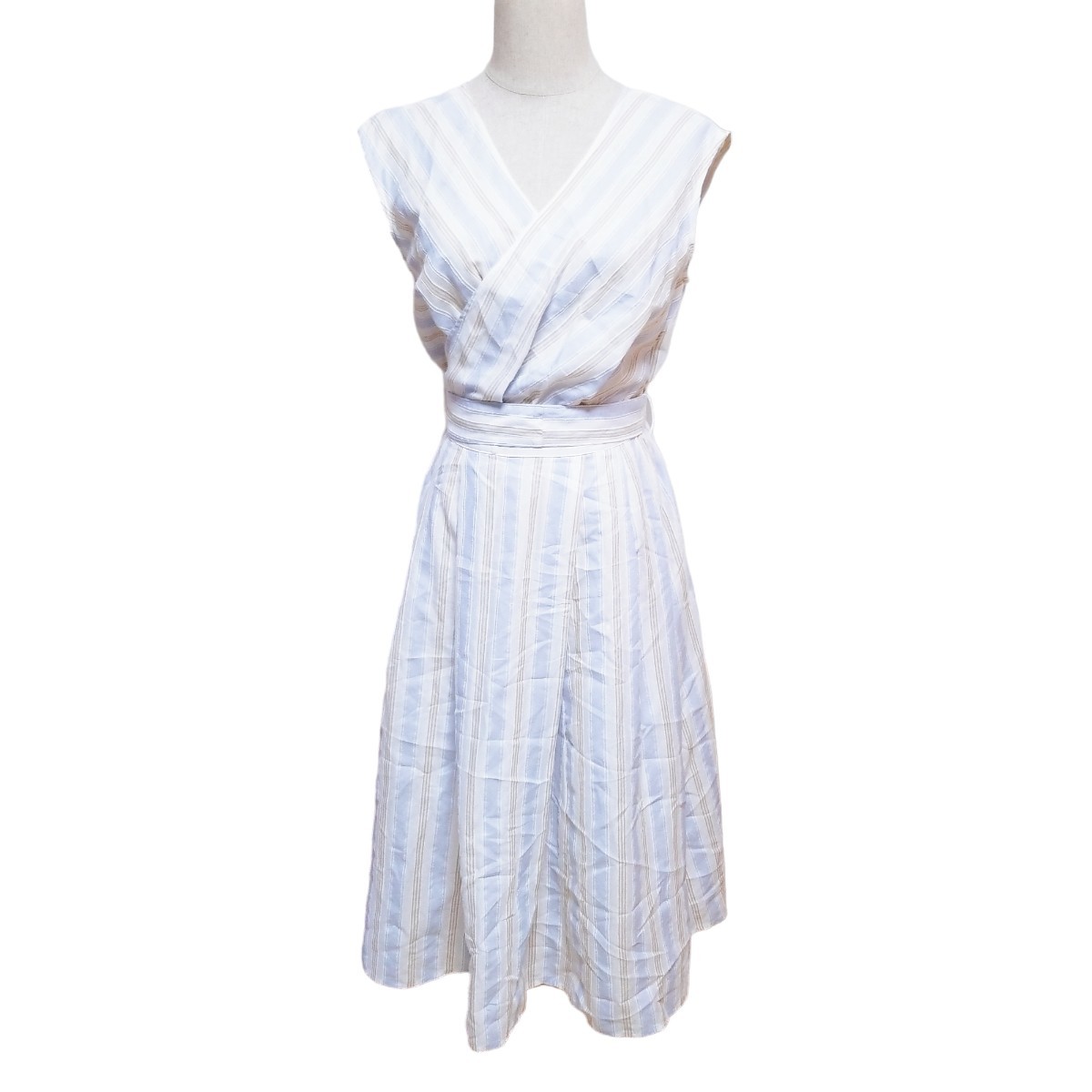 Y1010 美品★ROPE PICNIC ロペピクニック カシュクール ロングワンピース ウエストゴム リボン付き レディース 38 M ホワイト×ブルー系