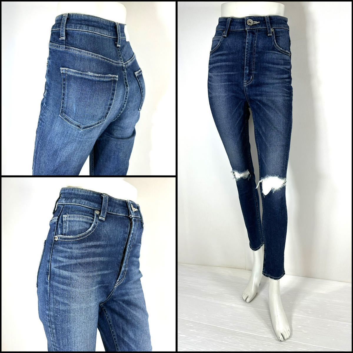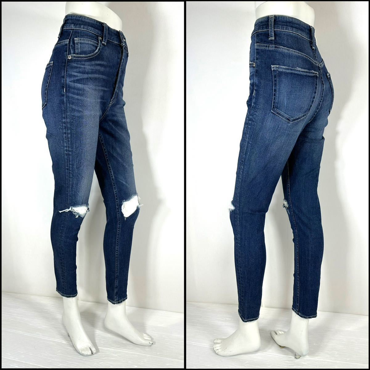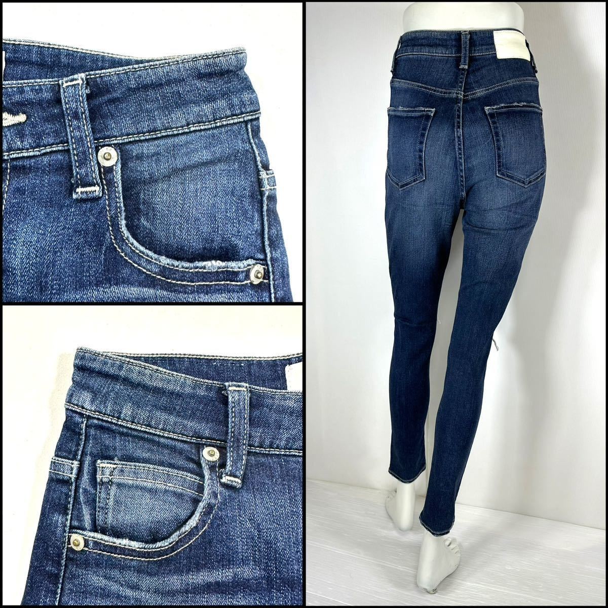 膝にダメージを施したシンプルながらカジュアルさもあるハイウエスト。