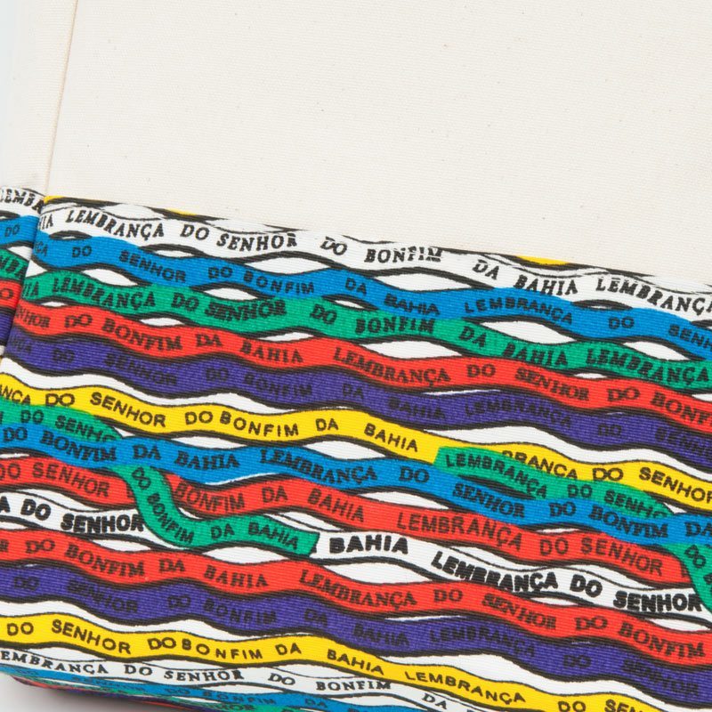 ボンフィン柄キャンバスショルダーバッグ アイボリーマルチ