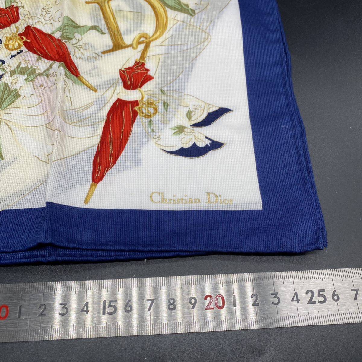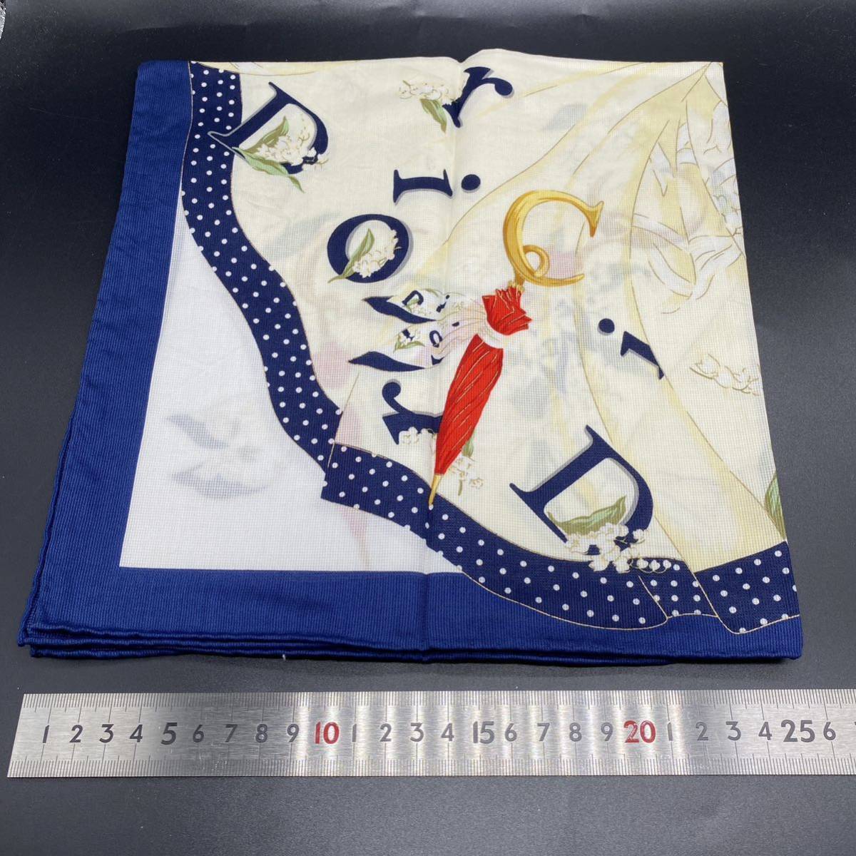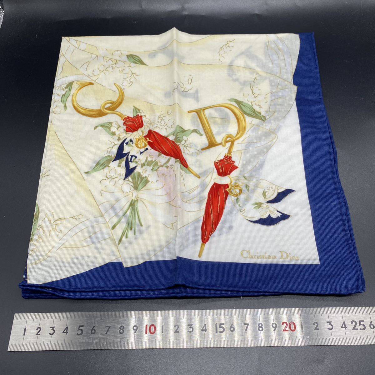 Christian Dior クリスチャンディオール ハンカチ  すずらん 傘 ふちネイビー no.30