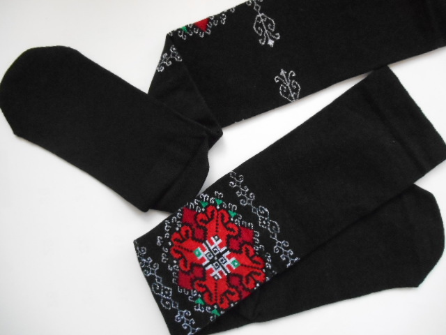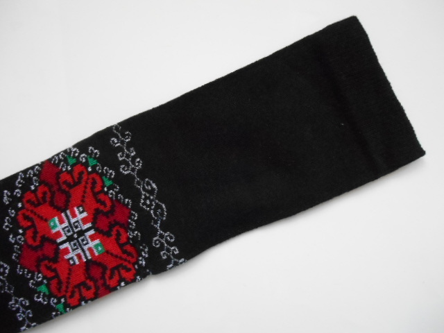 黒地に赤を基調とした刺繍モチーフ柄が美しい靴下です。