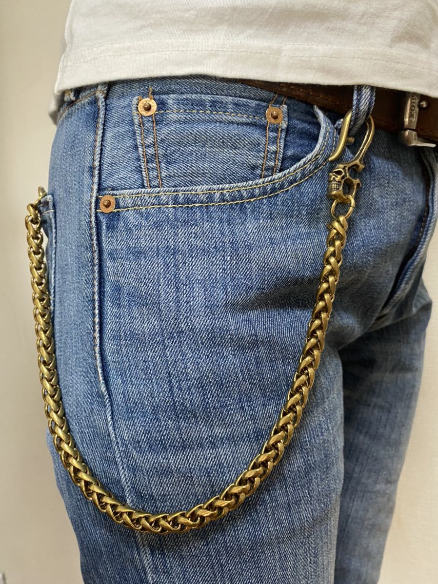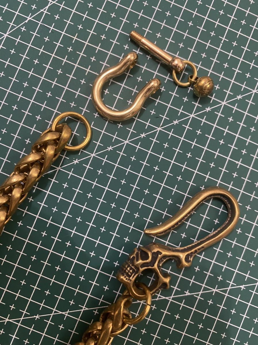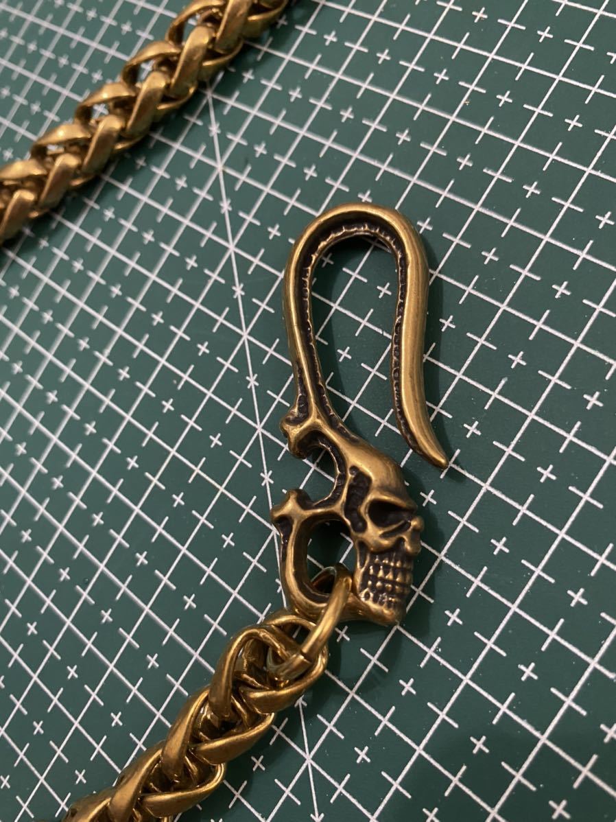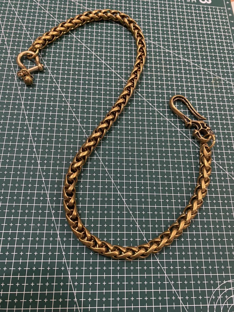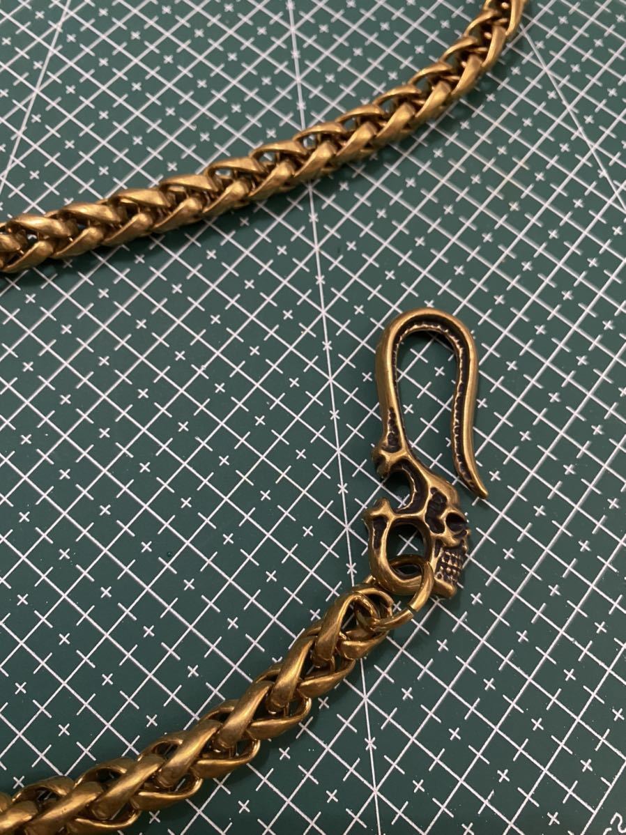 真鍮製ウォレットチェーン 編込み 旧車やヴィンテージバイクのバイカースカル 鎖