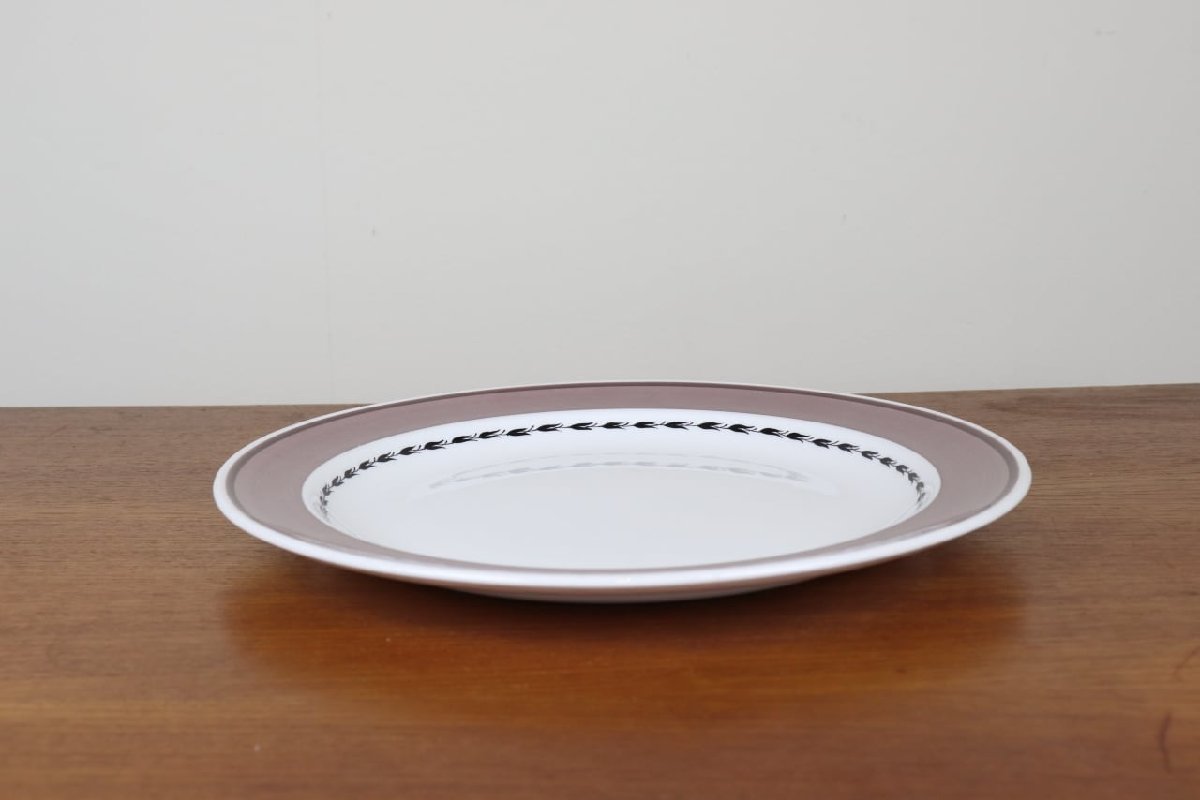 優しい陶器の地肌に茶色のバーダーと黒の模様がマッチした