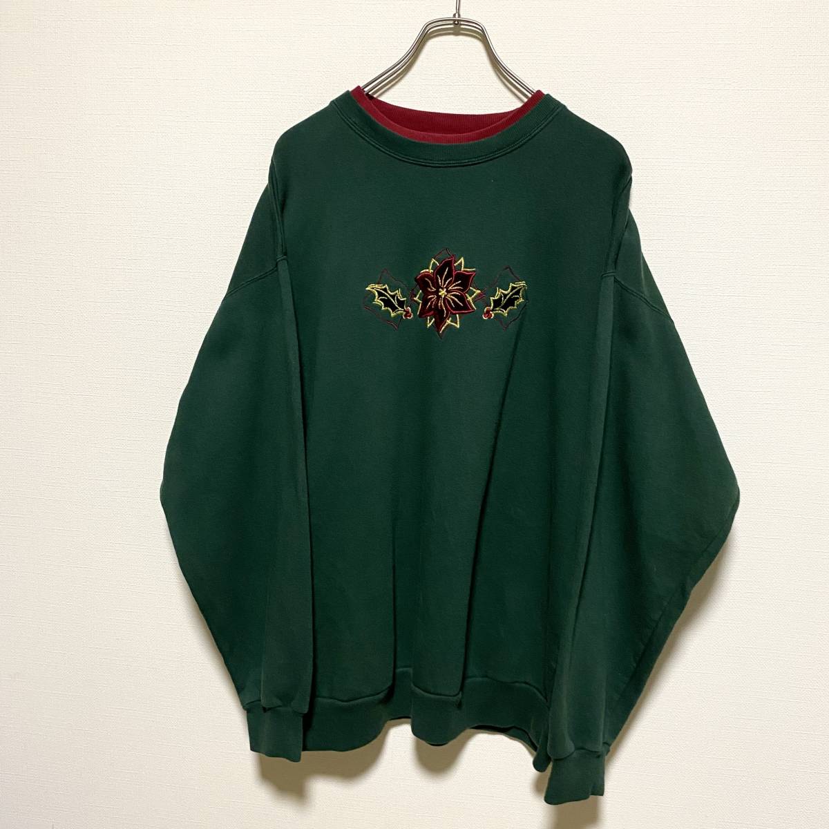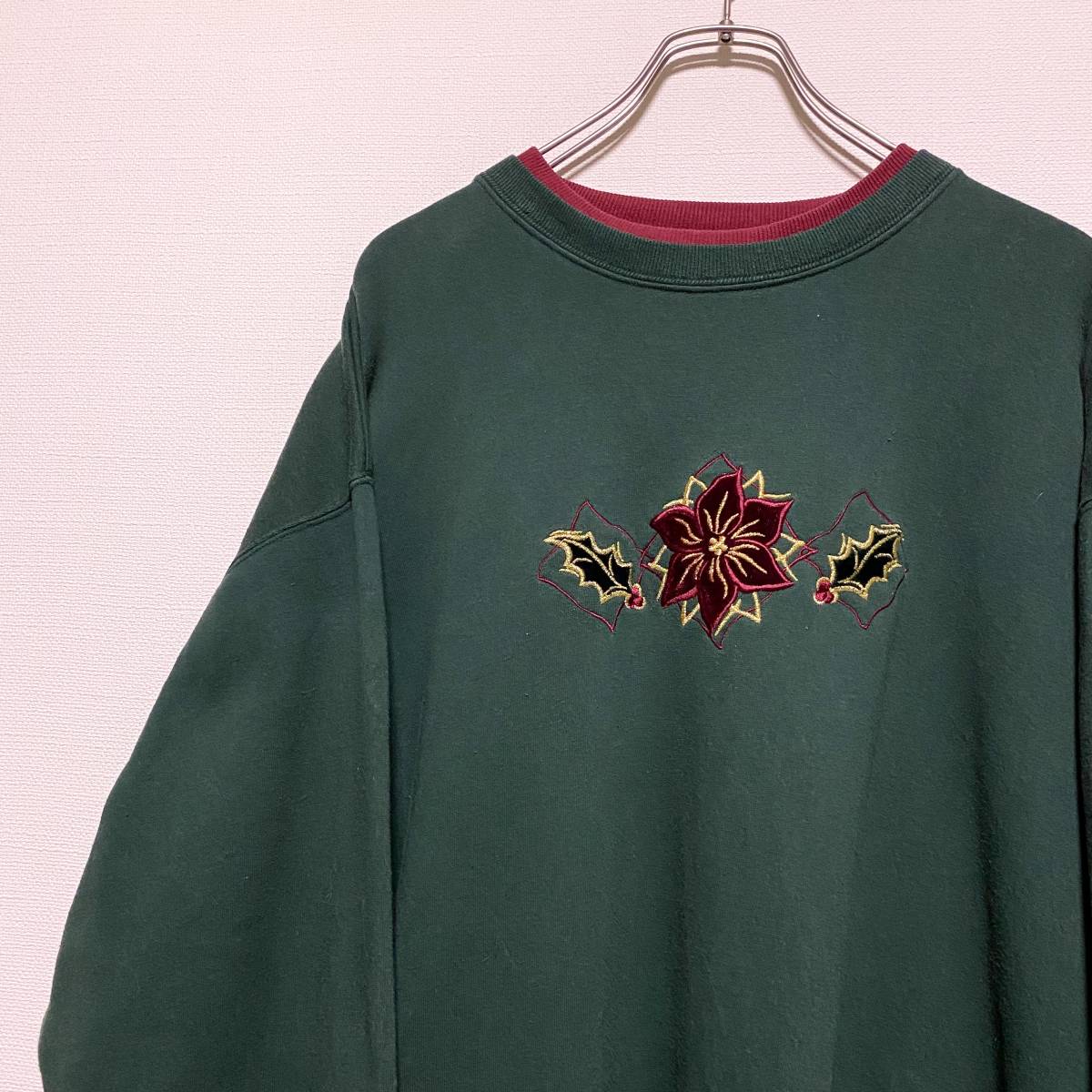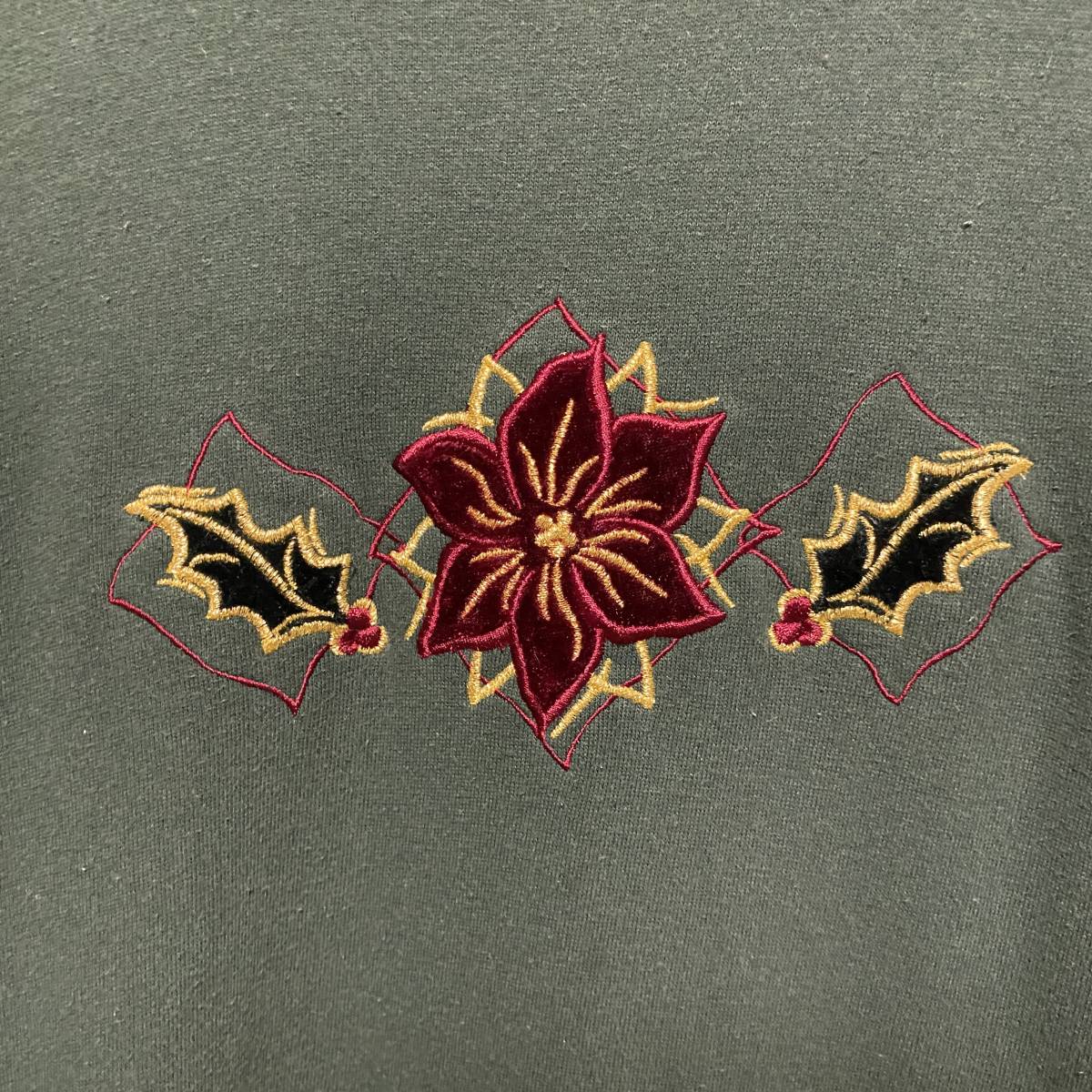 アメリカ古着 90s ヴィンテージ 花柄 刺繍 裏起毛 トレーナー スウェット レトロデザイン XLサイズ 【R6】