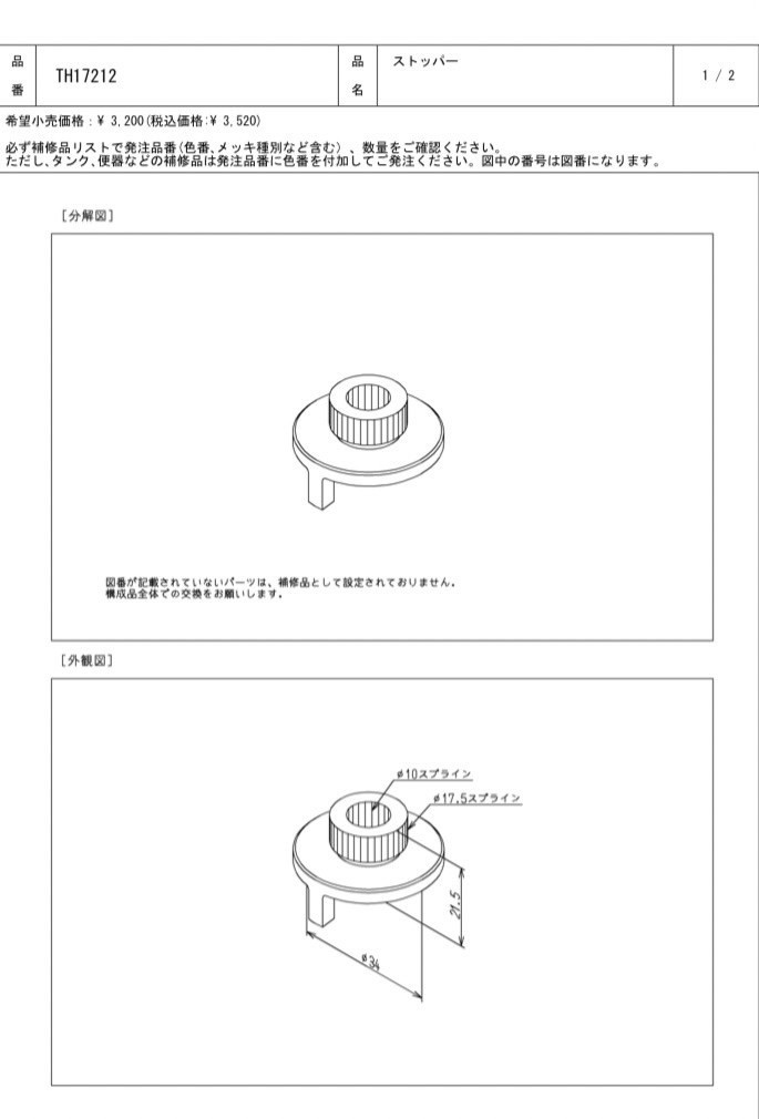な985-1 TOTO 水栓部材 ストッパ TH17212 直径33mm 4個セット 飲食店/厨房/店舗/業務用 | |||||||||||