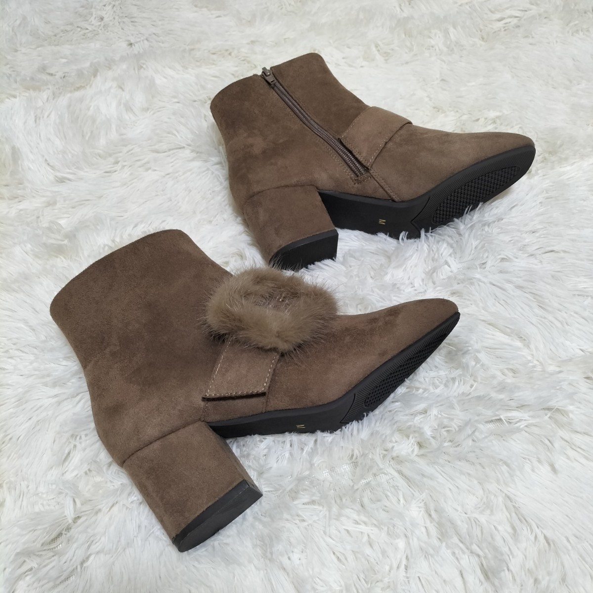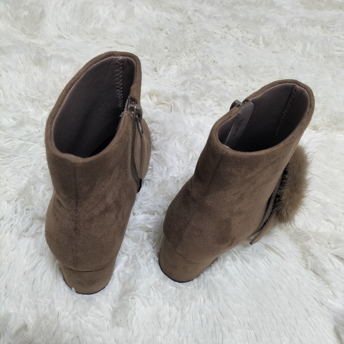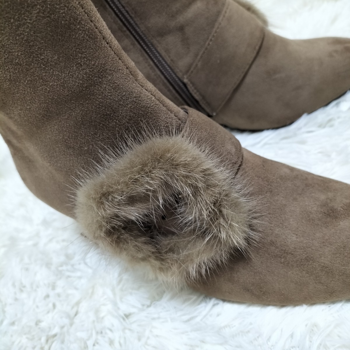 美品★RANDA ブーティー ショートブーツ サイドジップ ミドルヒール スエード ファー付き 茶系 ブラウン サイズ表記M 23〜23.5cm相当 ランダ 古着 USED