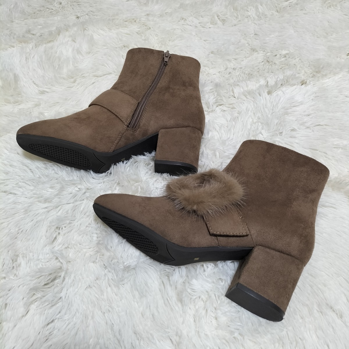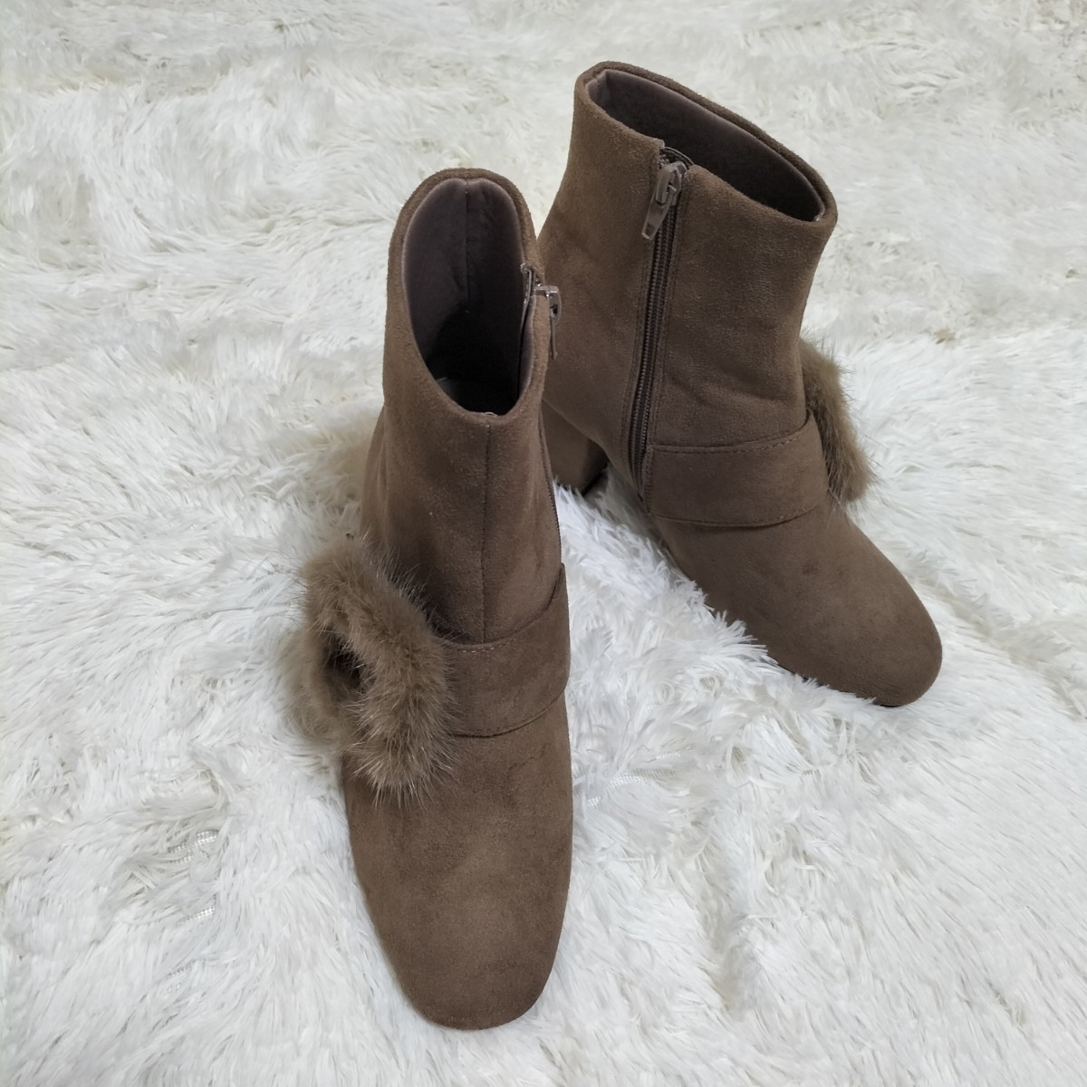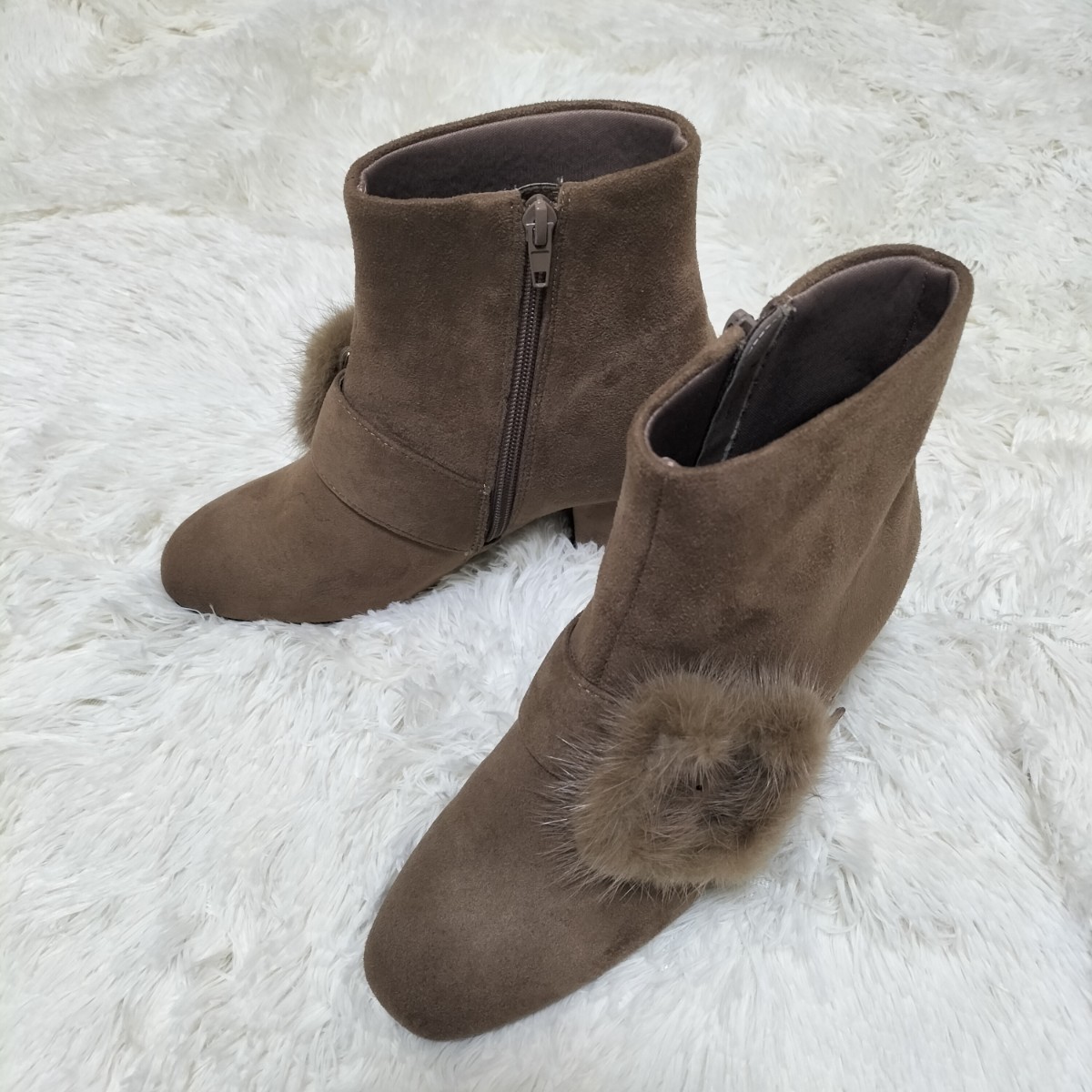 美品★RANDA ブーティー ショートブーツ サイドジップ ミドルヒール スエード ファー付き 茶系 ブラウン サイズ表記M 23〜23.5cm相当 ランダ 古着 USED