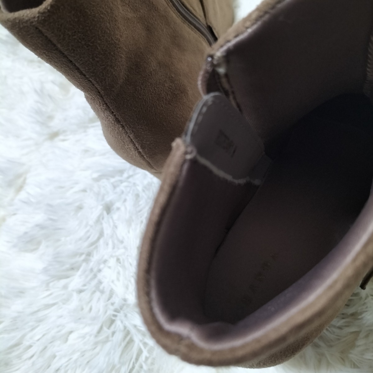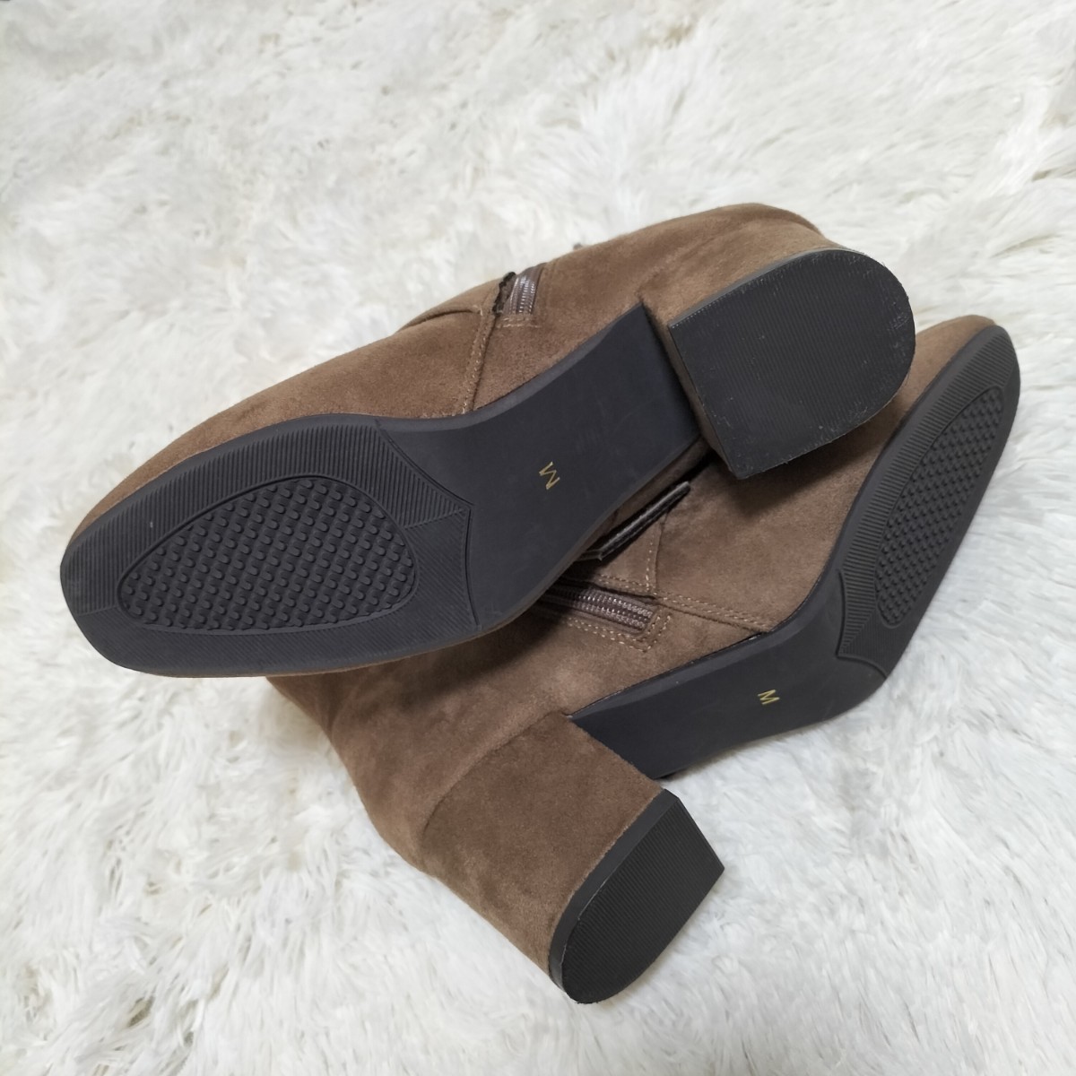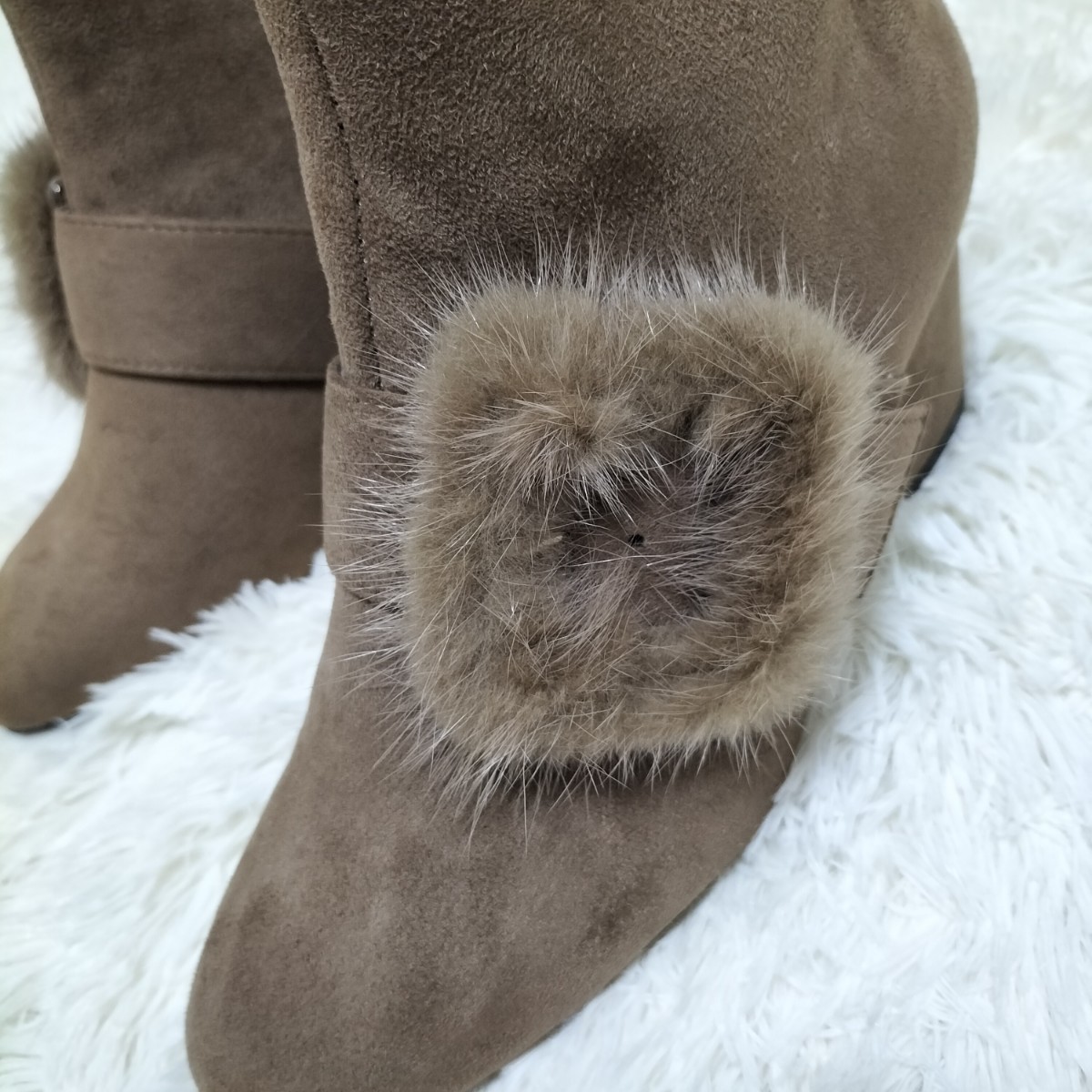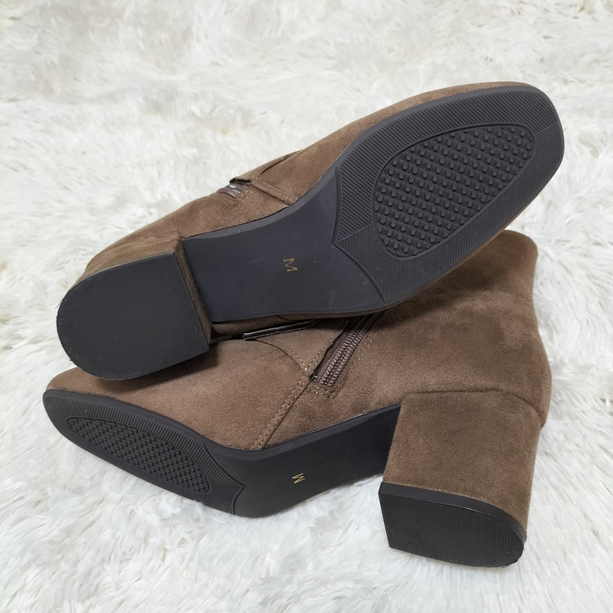 美品★RANDA ブーティー ショートブーツ サイドジップ ミドルヒール スエード ファー付き 茶系 ブラウン サイズ表記M 23〜23.5cm相当 ランダ 古着 USED
