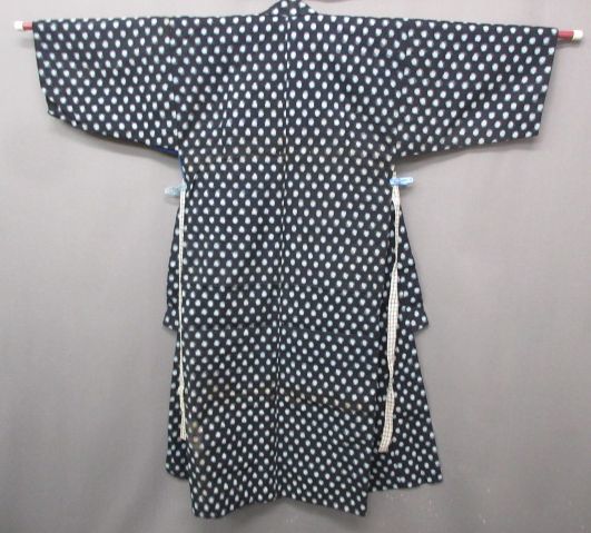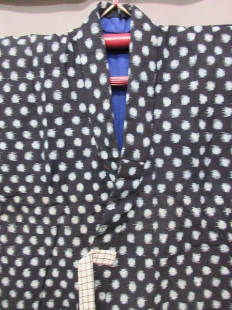 【政】33208 雪ん子絣合わせ着物 縞 木綿