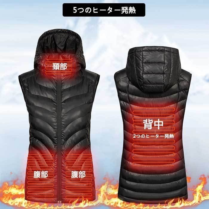 電熱ベスト レディース電熱ベスト 電熱ジャケット 充電式ヒート USB 加熱 バッテリー給電 5つヒーター 3段温度調整 ☆カラー/3色選択/1点