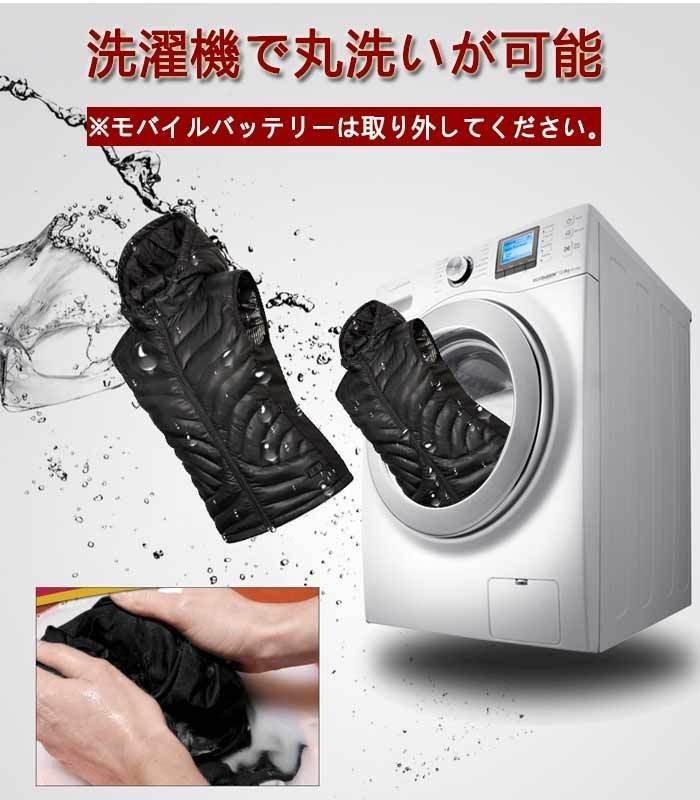 電熱ベストのバッテリーを取り出して、余熱がない状況で手洗い/洗濯機洗い/ドライで洗えます。洗濯機で洗う際は洗濯ネットの利用をオススメしておりますが、手洗いが一番オススメです。強力に揉んでは行けません。自然乾かした後、使用することができます。いつもクリーンな状態を保ち!