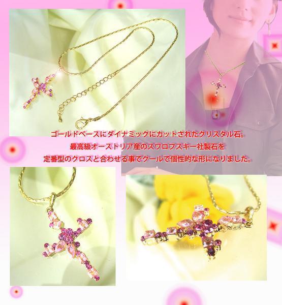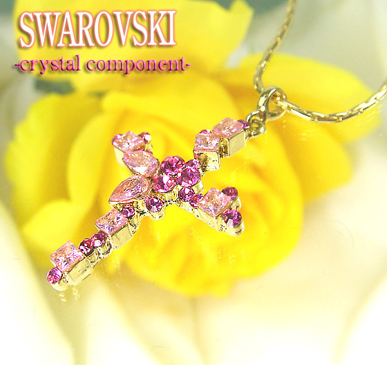 SWAROVSKI クリスタル GD クロス ネックレス ローズ