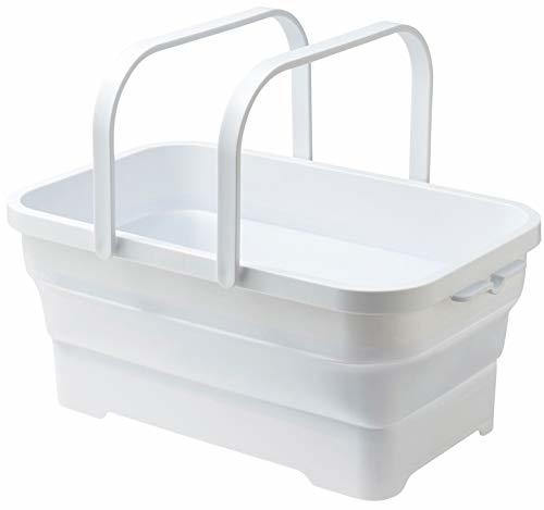 単品・ホワイト 約幅46.3×奥行29×高さ19.6cm I-581・・Color:ホワイトStyle:単品・サイズ:組み立て時/約幅46.3×奥行29×高さ19.6cm・素材・材質:[本体・水抜き栓]熱可塑性エラストマー [枠・底・ハンドル・止め具]ポリプロピレン・生産国:日本・容量:約15L・耐熱温度:熱可塑性エラストマー・ポリプロピレン/100度、ABS樹脂/80度、耐冷温度:-20度やわらか素材のたためるバスケット。 水が溜められるので、洗濯物の浸け置き洗いやペットのお風呂などに便利。 使わない時はたたんでコンパクトに収納。 道運びに便利な持ち手付き。 アウトドアや収納用、防災用など、多彩な用途に。