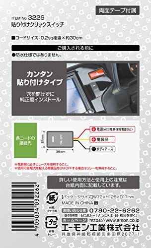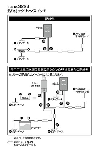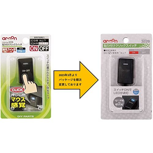 12V・1A/ブルー・ブルー ON-OFF(照光タイプ)/12V・1A 3226・・Style:12V・1A/ブルーPatternName:貼付クリックタイプ・スイッチパターン:ON-OFF・使用可能電力:DC12V・1A以下・コード:0.2sq相当-約30cm・両面テープ付属・LED発光色:ブルー商品紹介 ■スイッチ位置がわかりやすい照光タイプ ■マウスのようなクリック感のある押し心地 ■貼るスイッチ(両面テープ付) 使用上の注意 防水仕様ではありません。 製品の仕様は予告なく変更する場合がございます。 ●使用可能電力を必ず守ってください。