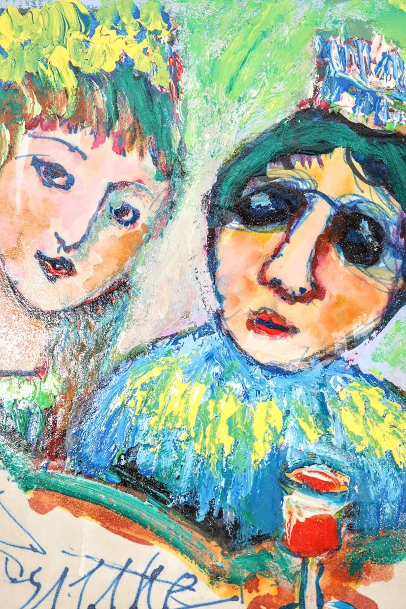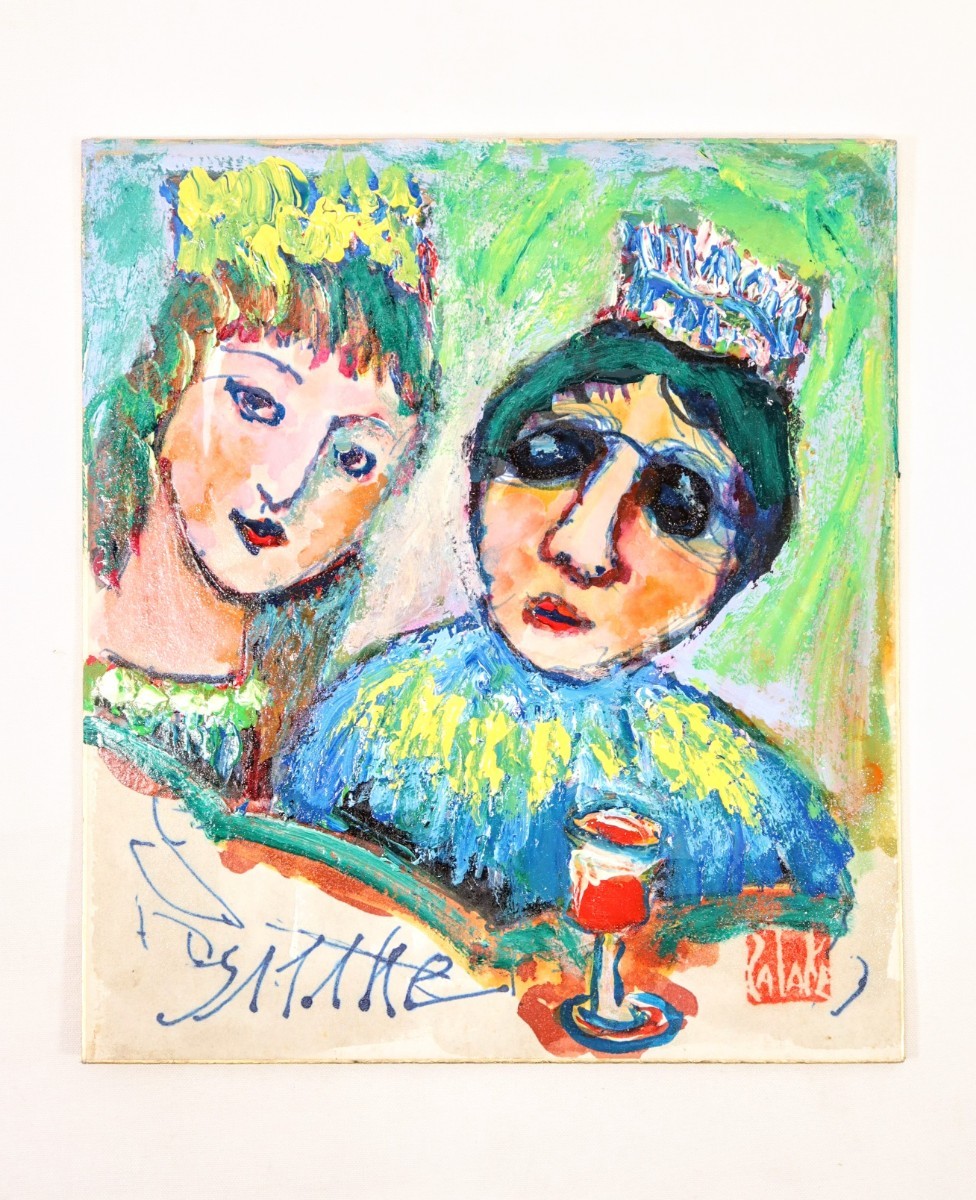 真作 佐竹稔 油彩「幸せな二人」画寸 24cm×27cm 神戸市出身 太洋美術家協会会長 平野のゴッホ 色彩鮮やかダイナミックな筆致で描く 8378