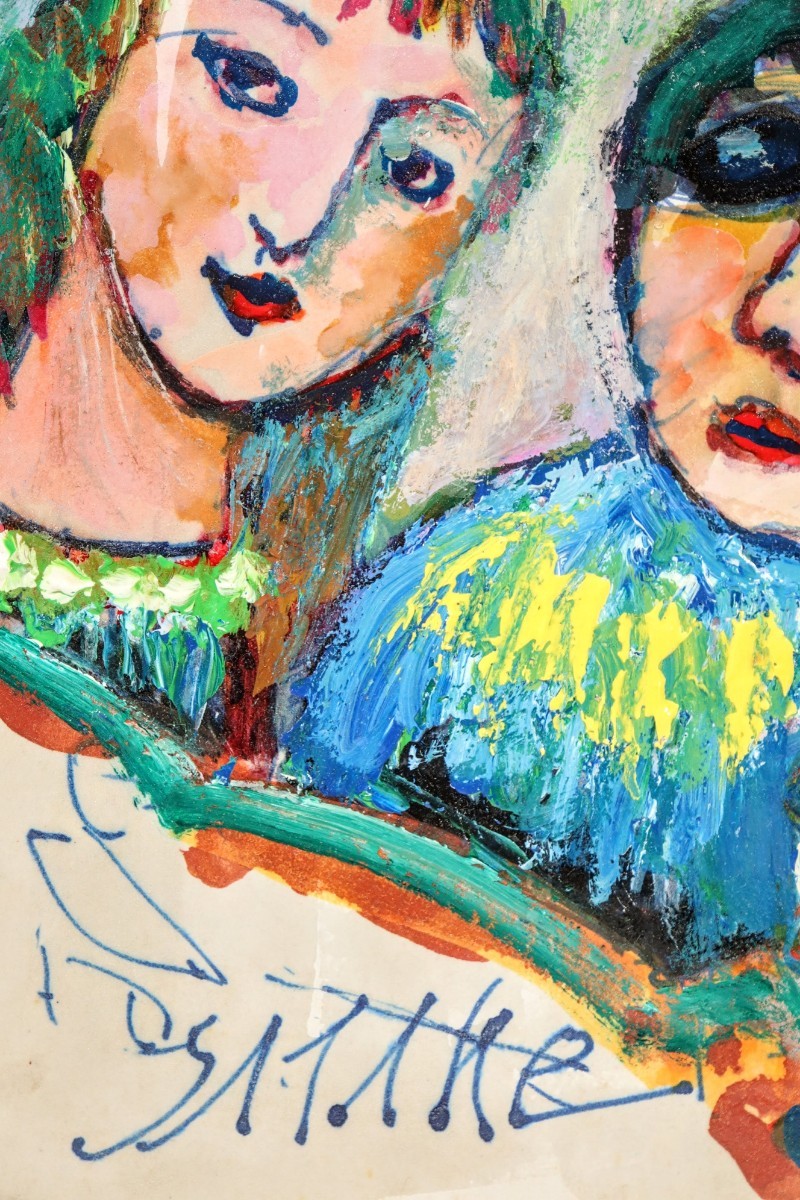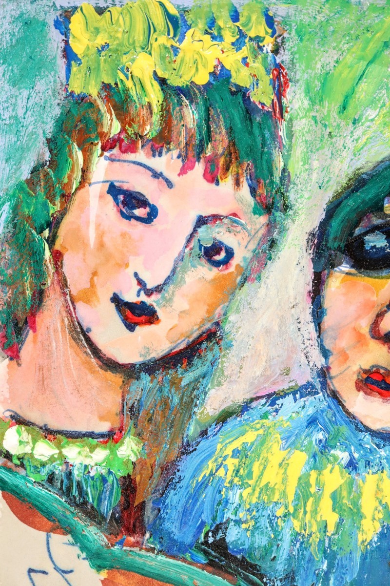 真作 佐竹稔 油彩「幸せな二人」画寸 24cm×27cm 神戸市出身 太洋美術家協会会長 平野のゴッホ 色彩鮮やかダイナミックな筆致で描く 8378