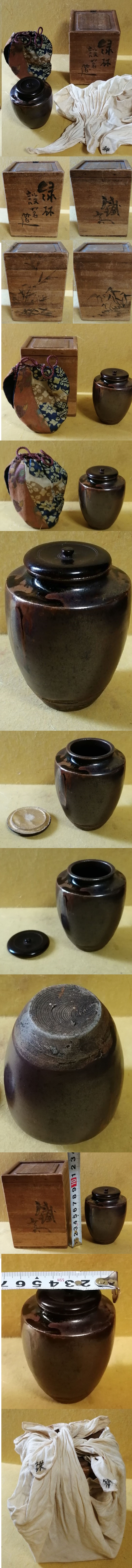 古瀬戸 肩衝 茶入 茶道具 富岡鉄斎 鉄斎 共箱 共袋 検:裏千家 表千家 古唐津 古伊万里 志野 織部 大海茶入 茶道具