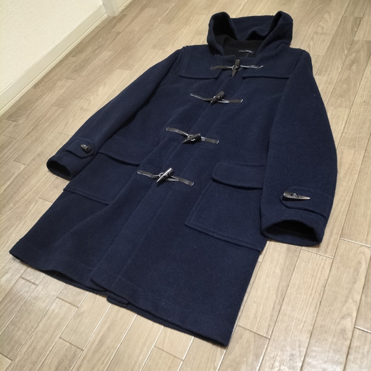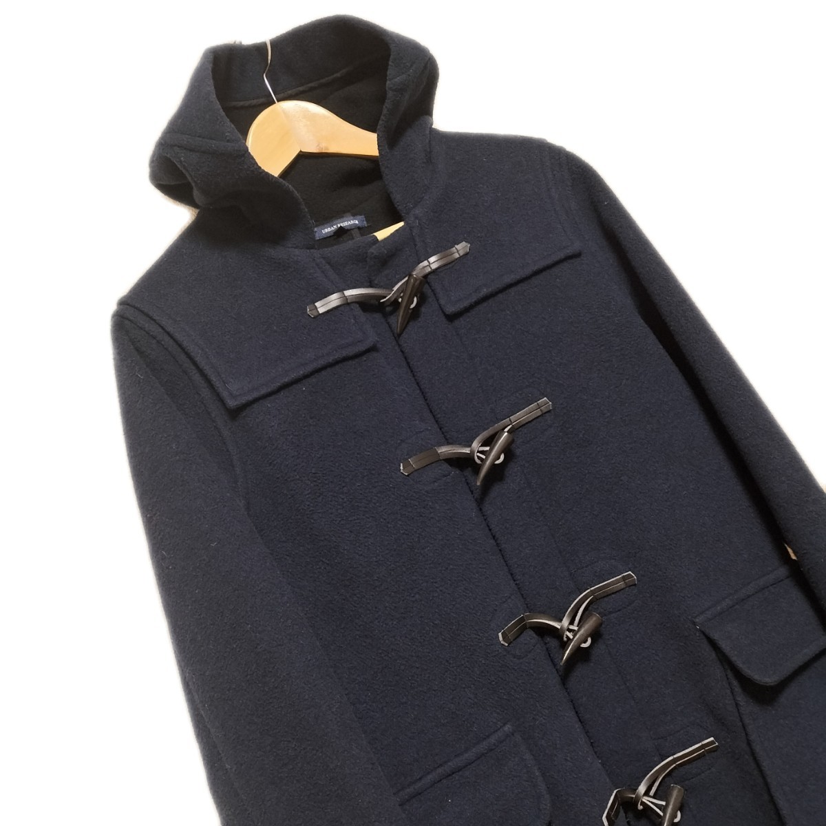 希少★アーバンリサーチ ダッフルコート ウール混 メルトン ジャケット トグル ツノ製 牛革 アウター 無地 ネイビー サイズ38 URBAN RESEARCH ブランド古着 USED