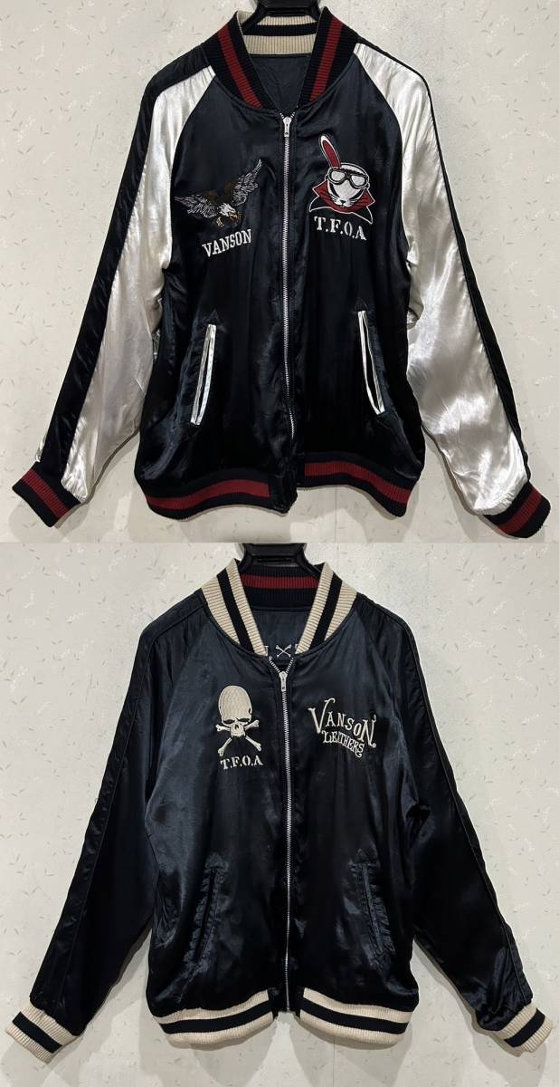 *バンソン vanson×T.F.O.A デスラビット スカル 日本 富士 鷹 刺繍 リバーシブル レーヨン スカジャン L    BJBC.AB