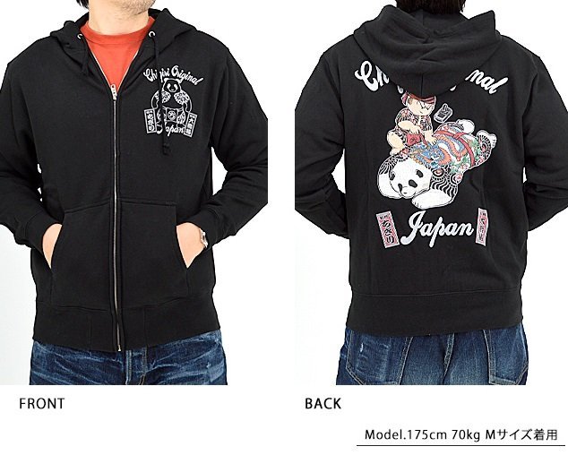 CHIGIRIさんから「和彫りパンダ&ちぎりインクジェットジップパーカー(CHL57-984)」のご紹介です。 かわいいパンダに刺青を彫っているベイビーちゃん。 ボディーには、裏毛タイプのスウェット生地を採用。 フロントはジップアップ仕様。 身頃にはポケットが縫い付けられています。 | |||||||||||||||||||||||||