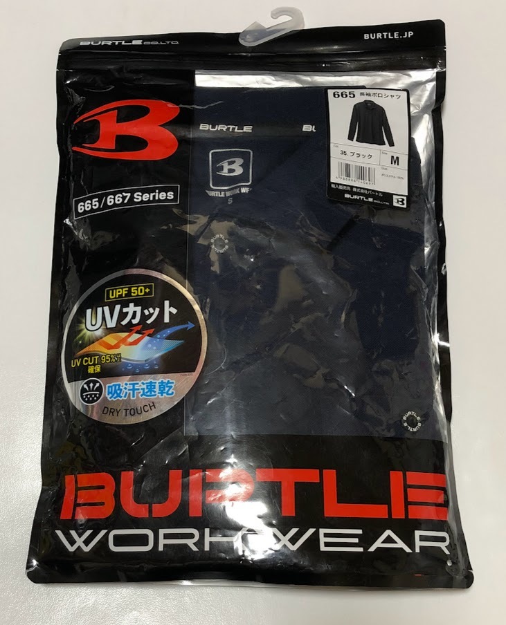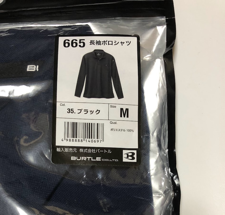 BURTLE バートル 665 長袖ポロシャツ ブラック 黒 Mサイズ ★未使用品★ UVカット 吸汗速乾 抗菌防臭