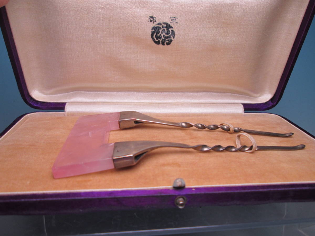 【江月】アンティーク・大振りな紅水晶のかんざし 37,67g 共ケース付 ローズクォーツ