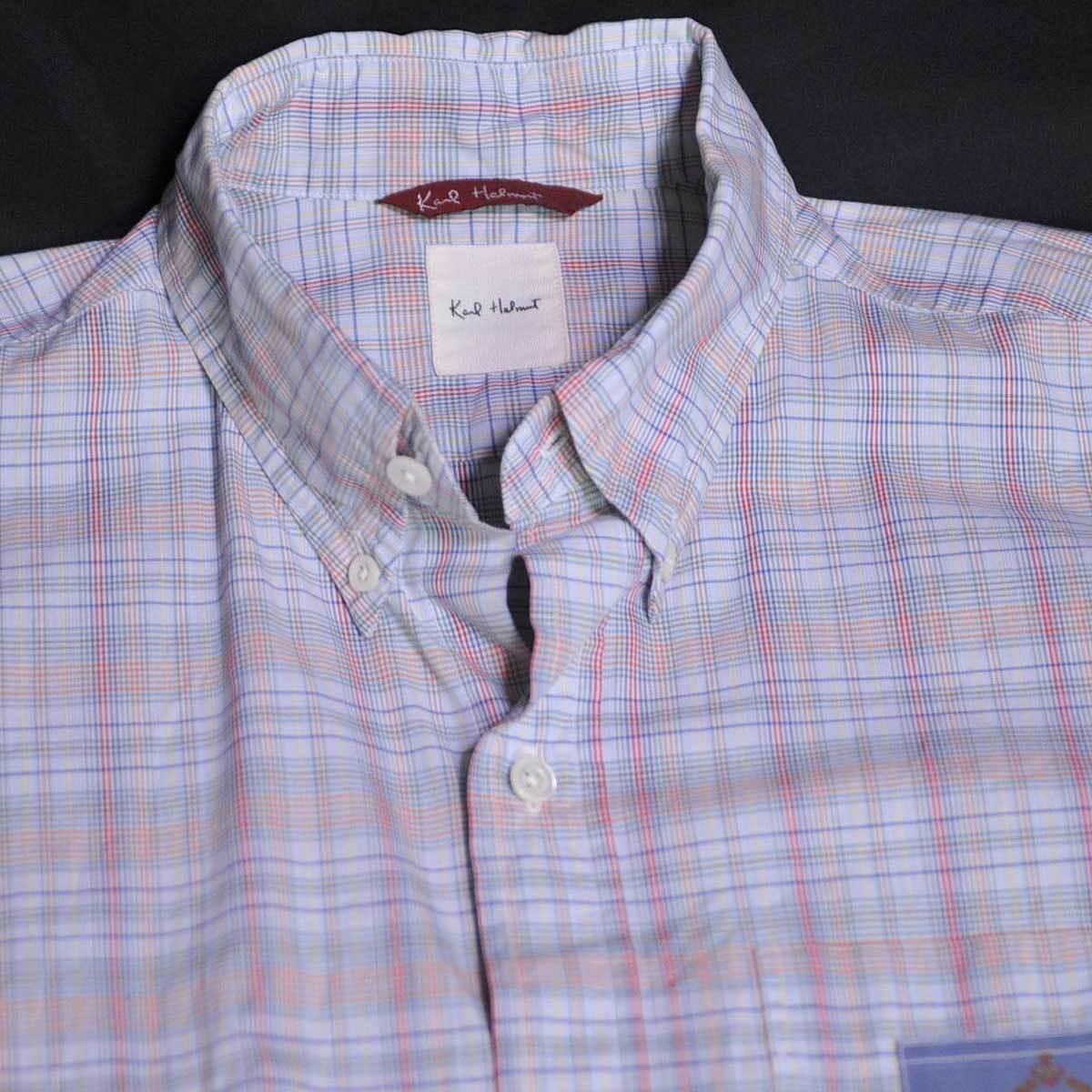 古着●カールヘルム 長袖シャツ スカイブルー チェック M xwp
