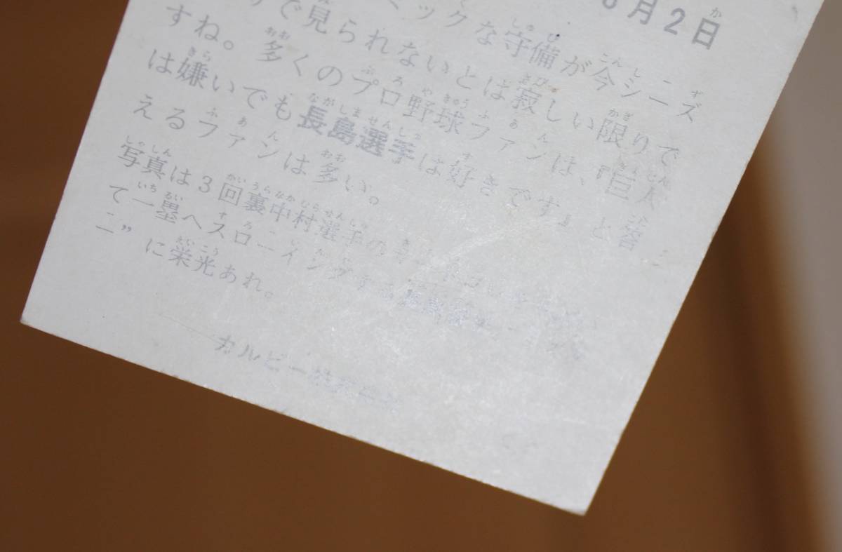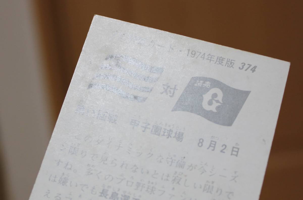 1974年度版 カルビー プロ野球カード No.374 熱戦シリーズ「第15回戦 甲子園球場 8月2日」長島茂雄 三塁手 (巨人)