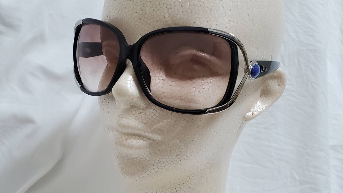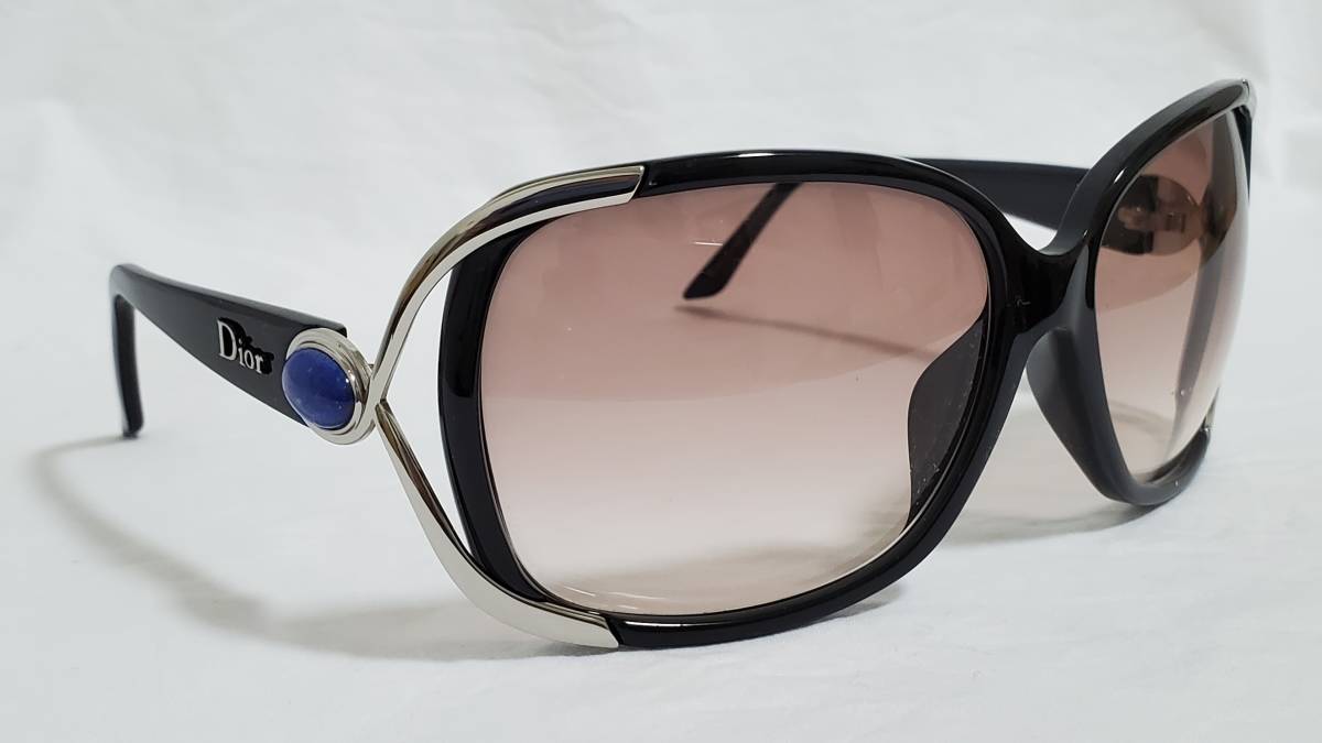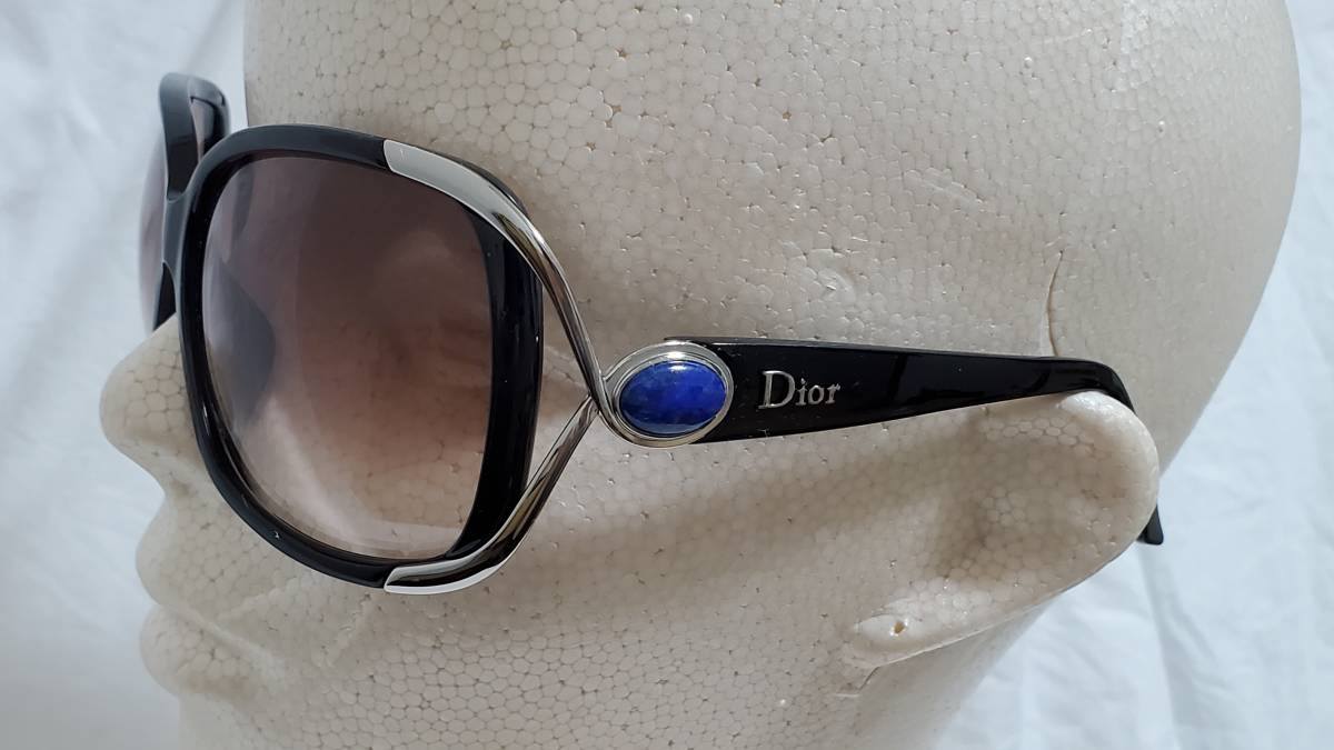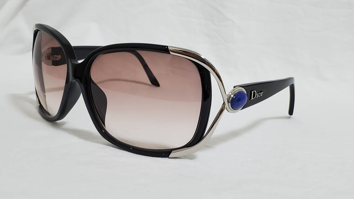 正規 レア Christian Dior ディオール ロゴ メタルアイライン ジュエリーサングラス 黒 茶 青 ラピス 大粒ストーン ビッグレンズアイウェア